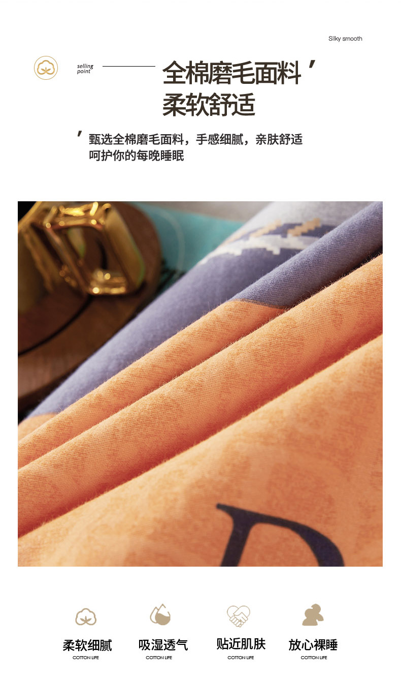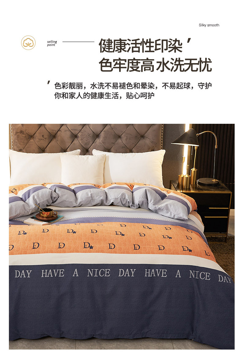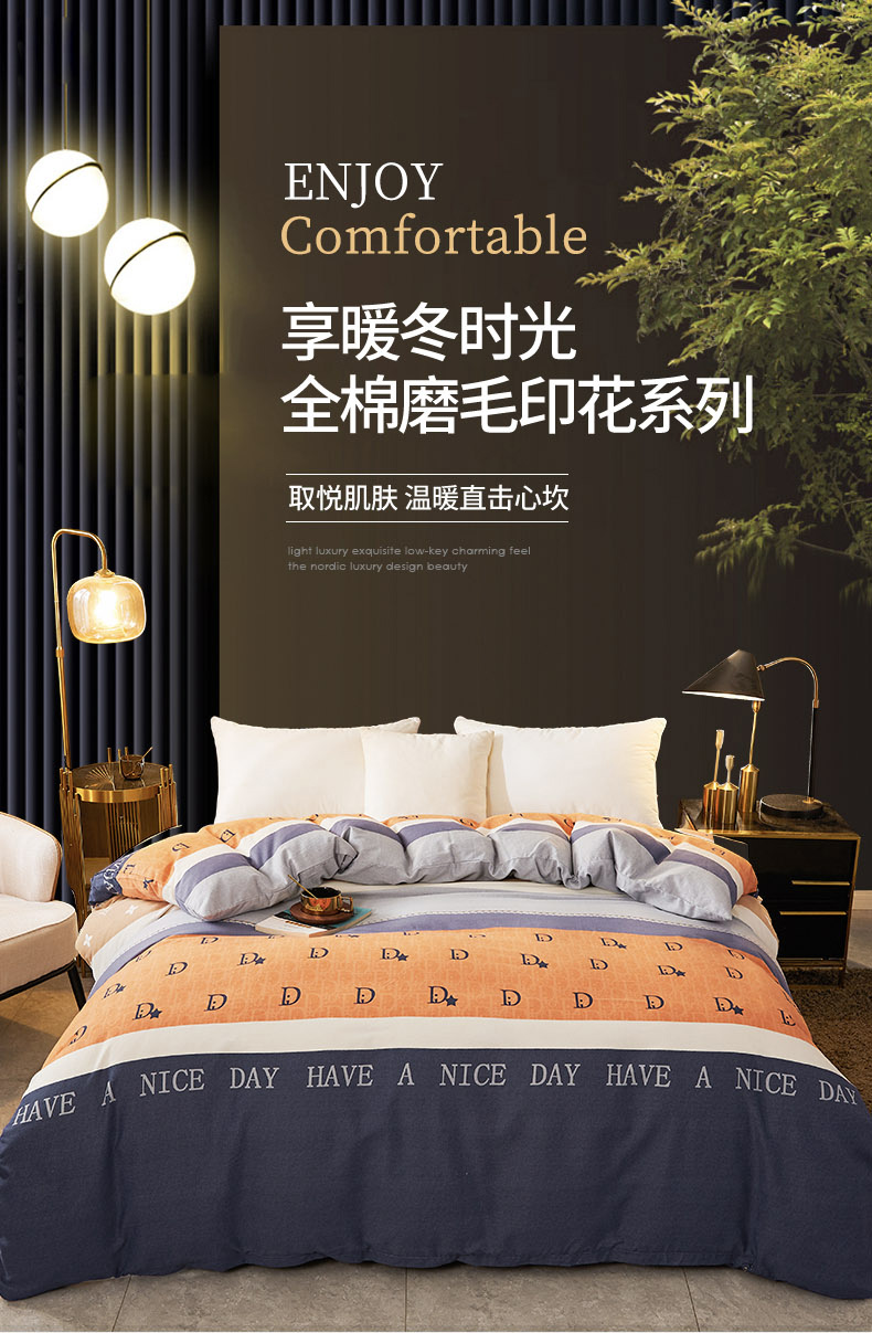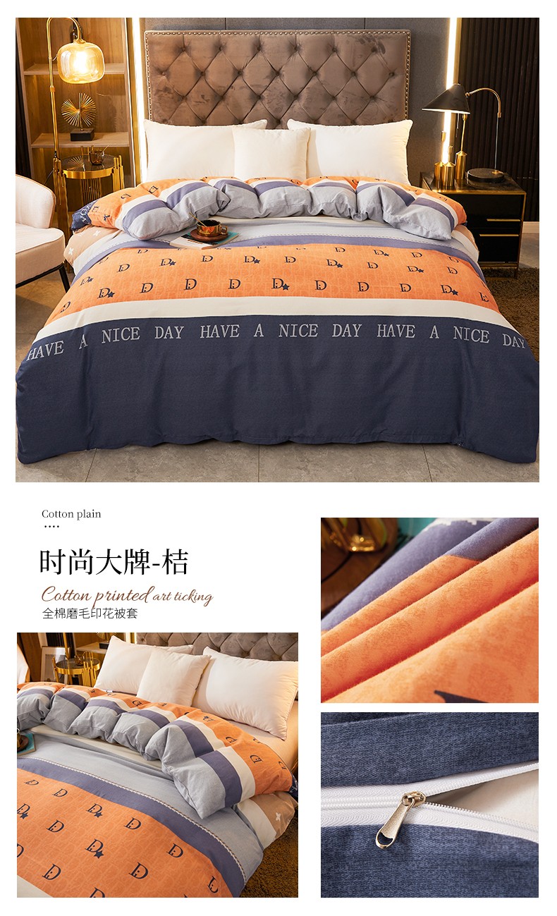 • 91家纺网 家纺一手货源 找家纺 伊而梦 2023新款全棉磨毛印花四件套系列单品被套 时尚大牌-桔