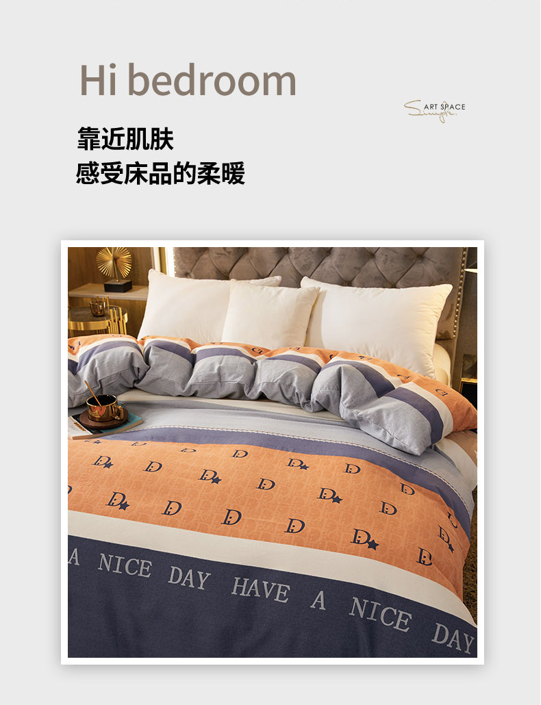当前位置: 91家纺网 > 商品网购 > 床上用品 > 被套 > 伊而梦 2023新款全棉磨毛印花四件套系列单品被套 时尚大牌-桔