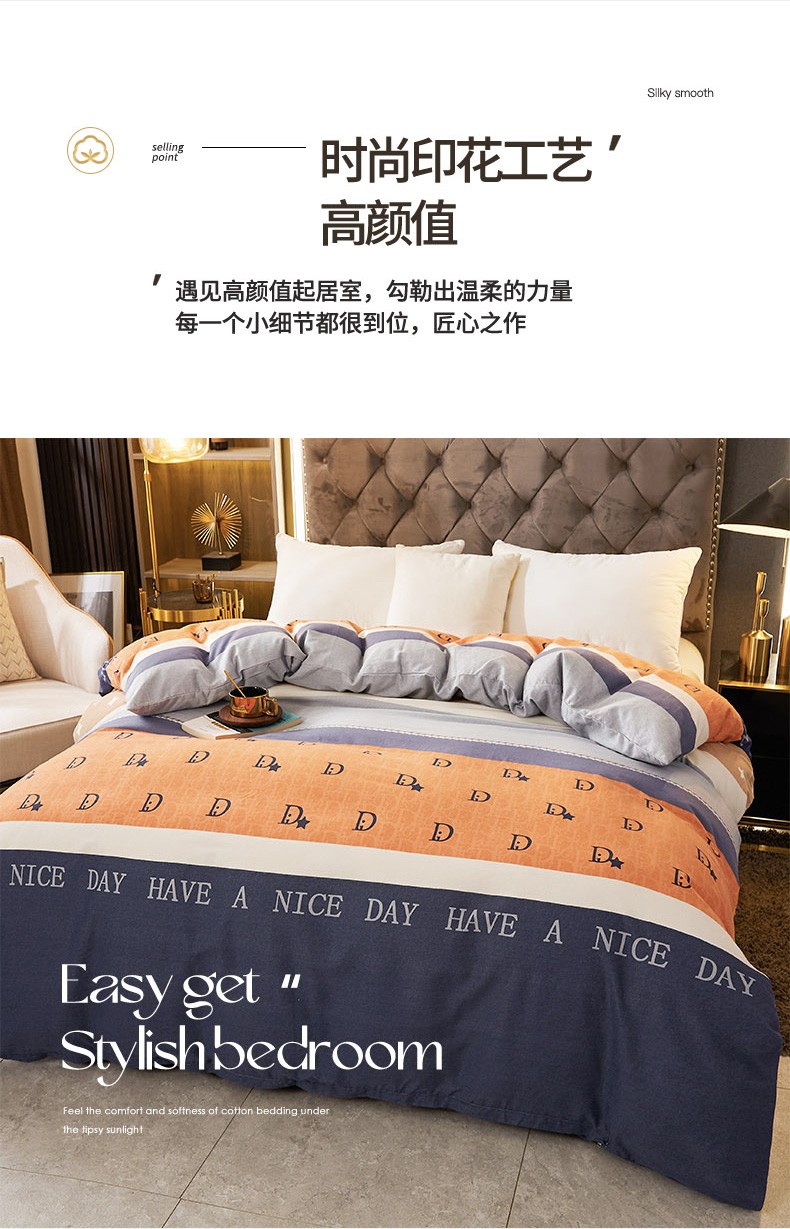 伊而梦 2023新款全棉磨毛印花四件套系列单品被套 时尚大牌-桔