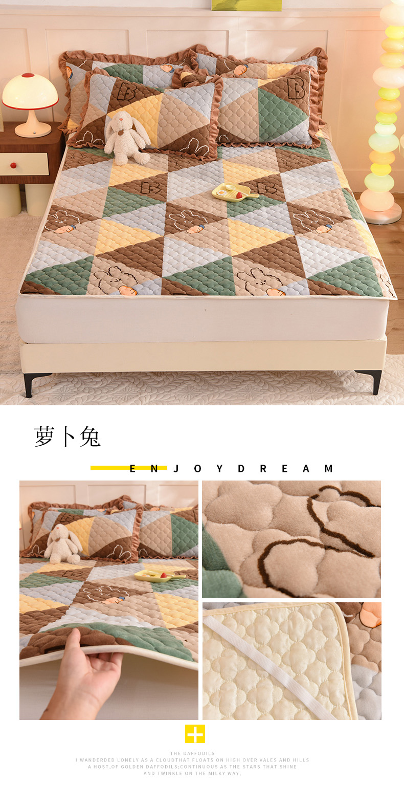 商品名称:美达 2025新款牛奶绒直边款牛奶绒床垫床褥床盖三件套 萝卜兔