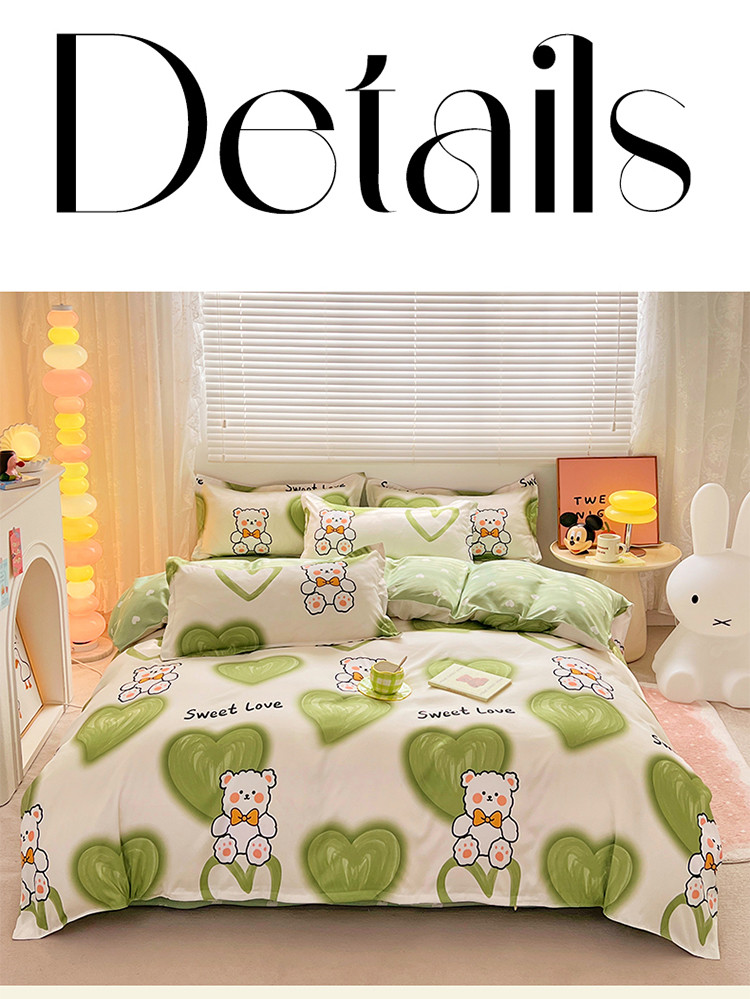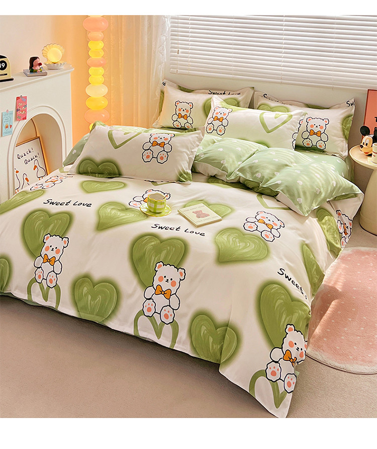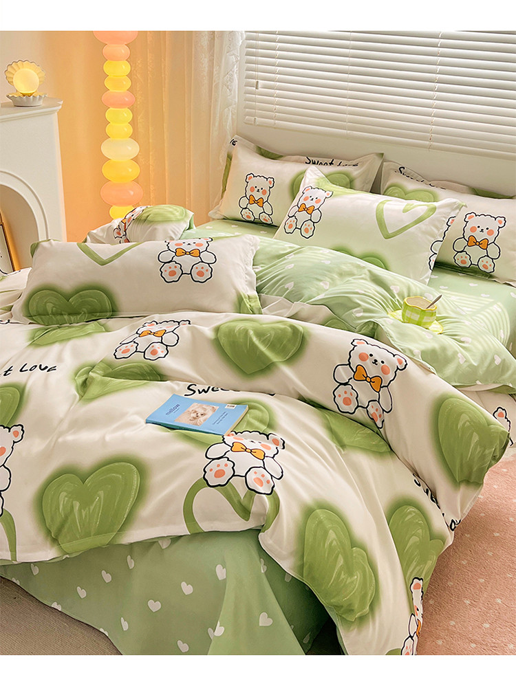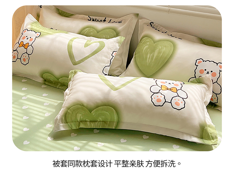 卡斯诺 2023新款芦荟棉四件套10月新花型 绿心熊