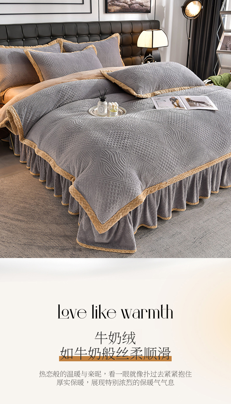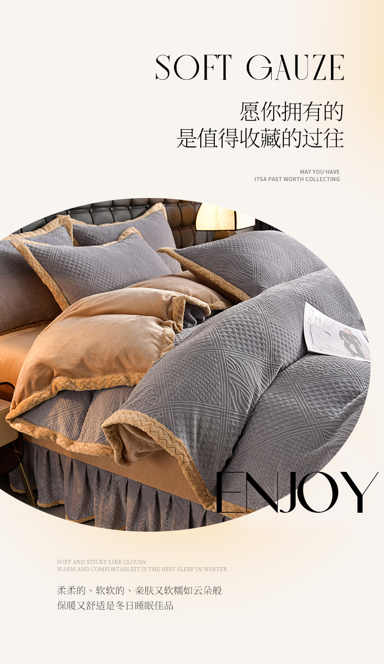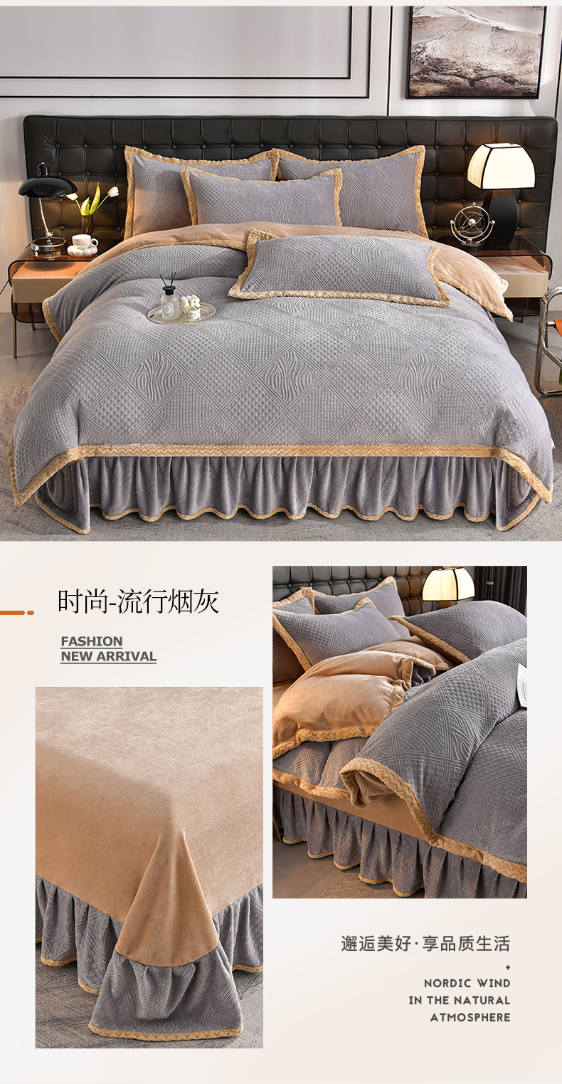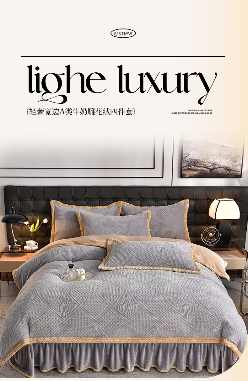 当前位置: 91家纺网 > 商品网购 > 床品套件 > 四件套 > 牛奶绒四件套 > 馨梦缘 2025新款A类牛奶绒雕花四件套 时尚-流行烟灰