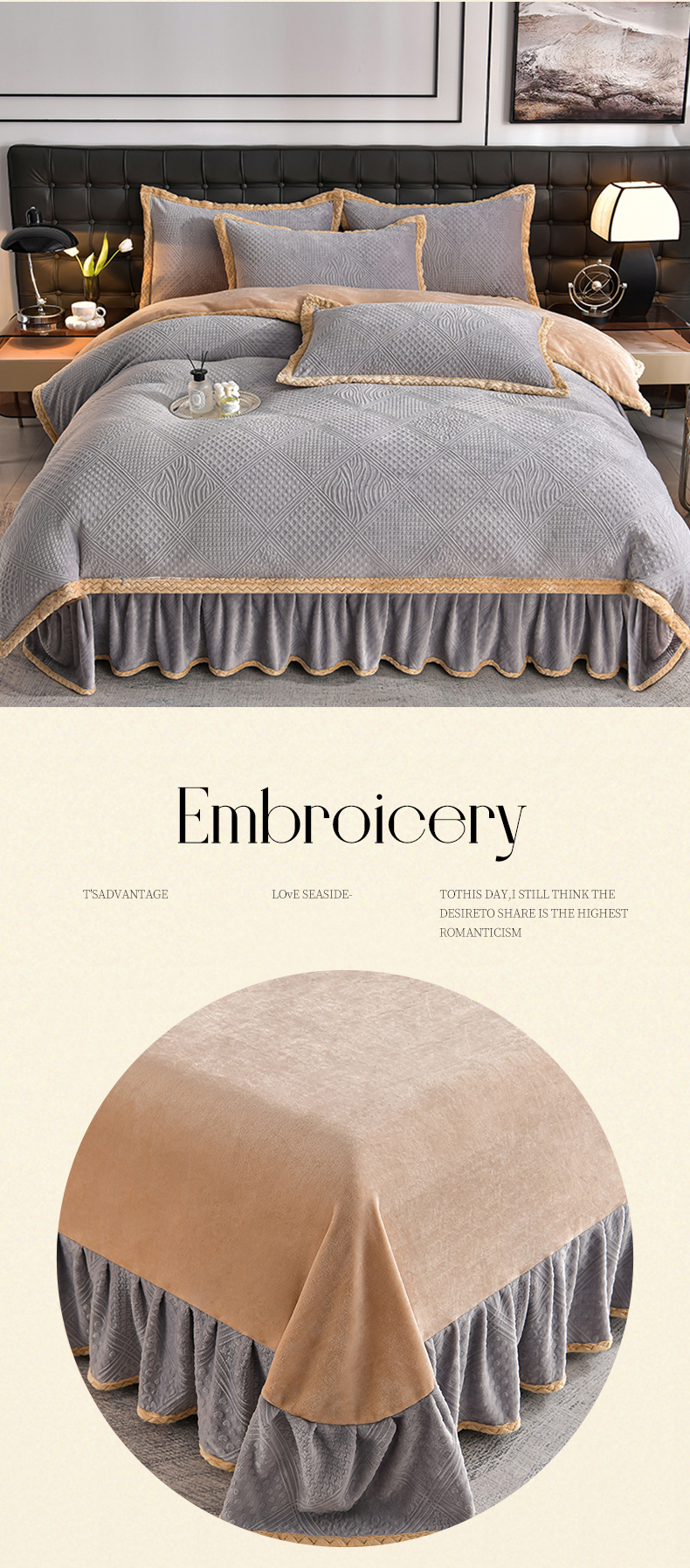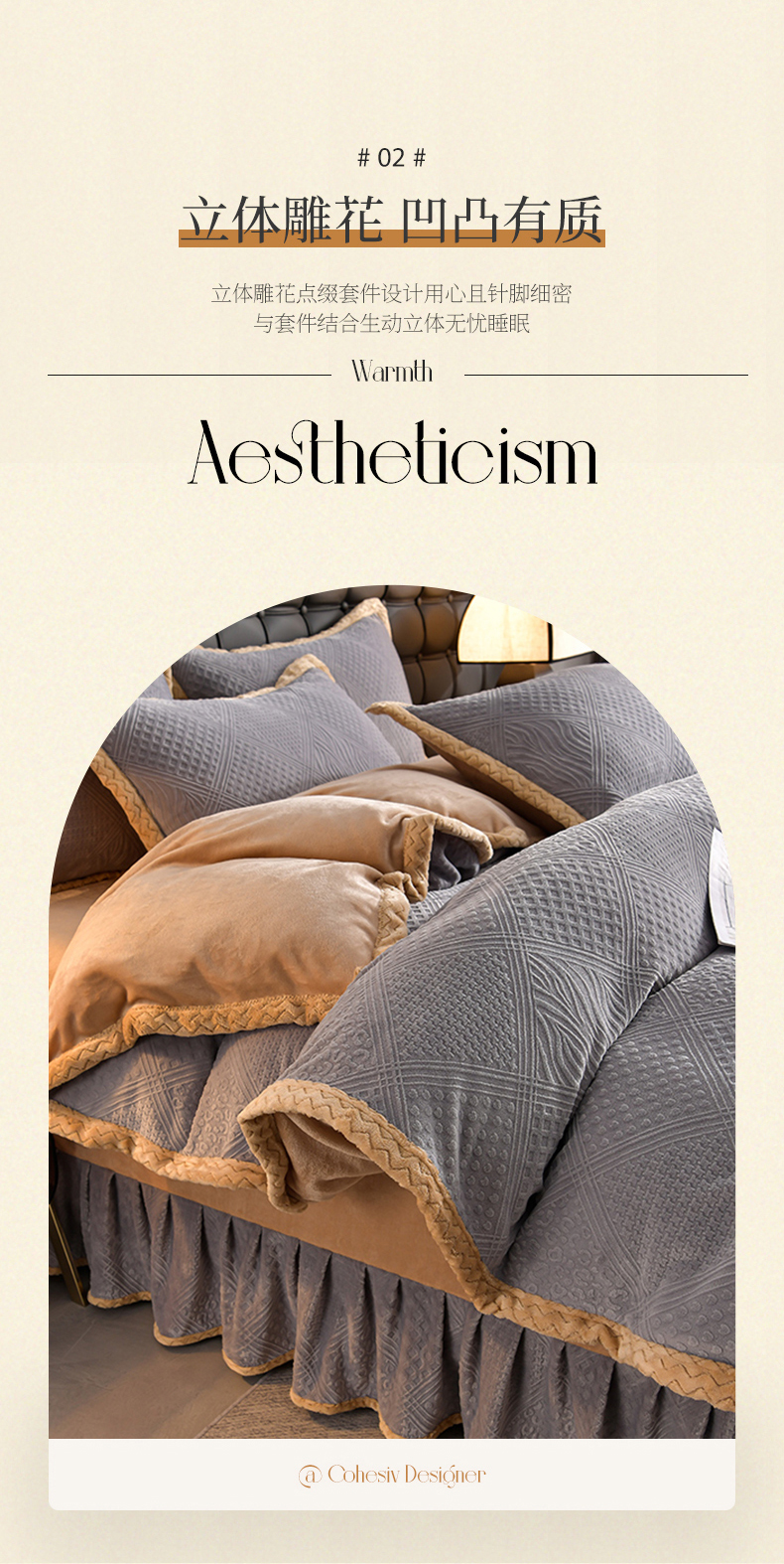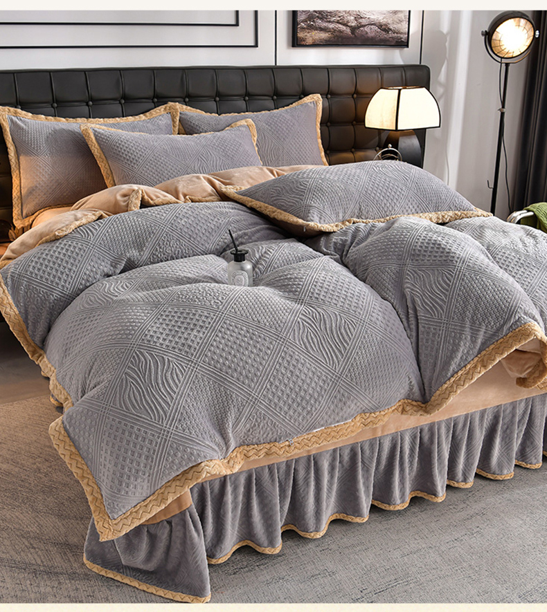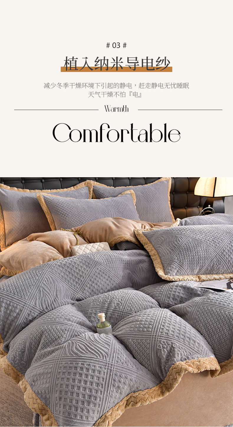 当前位置: 91家纺网 > 商品网购 > 床品套件 > 四件套 > 牛奶绒四件套 > 馨梦缘 2025新款A类牛奶绒雕花四件套 时尚-流行烟灰