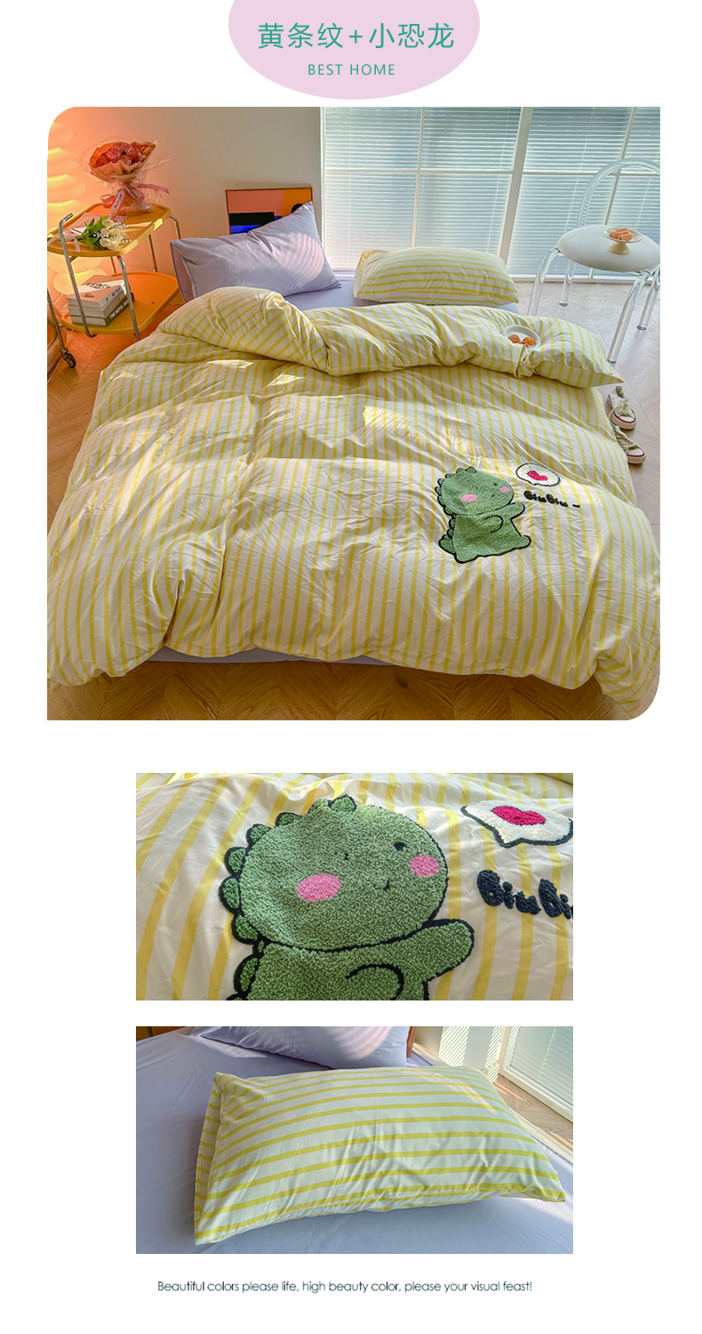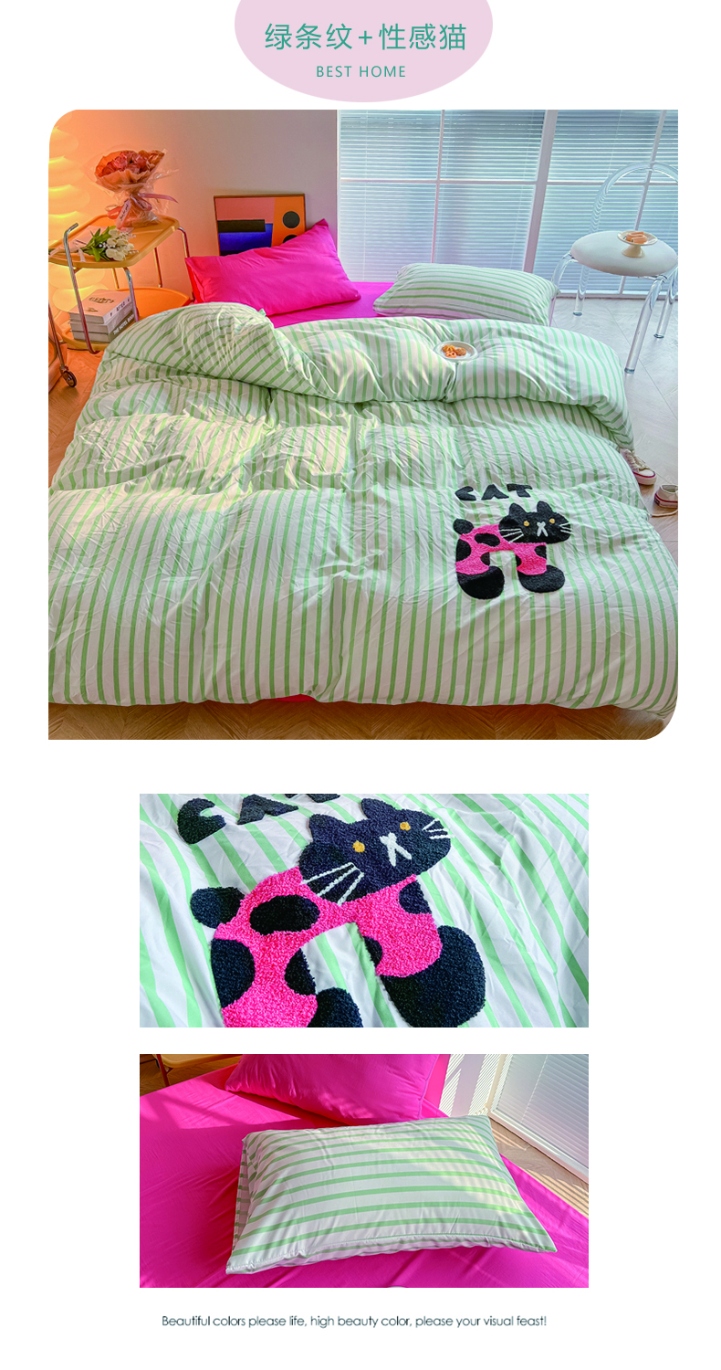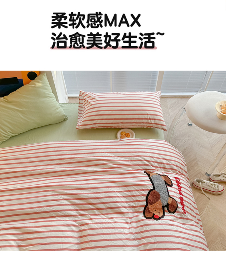 (总)子钦家纺 2024新款水洗棉多巴胺混搭毛巾绣四件套