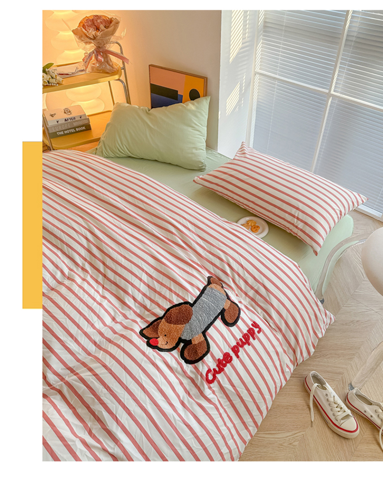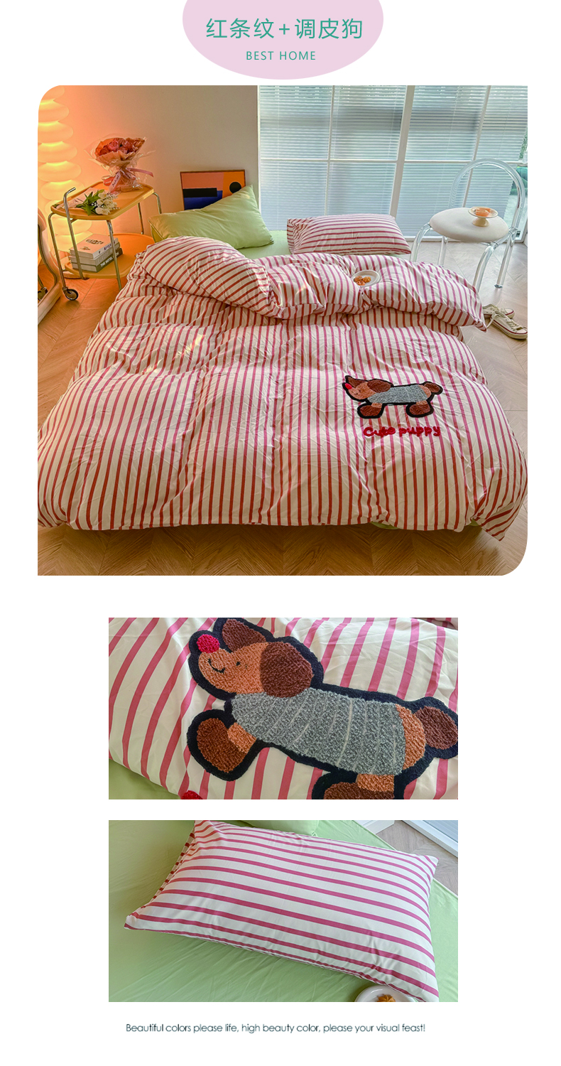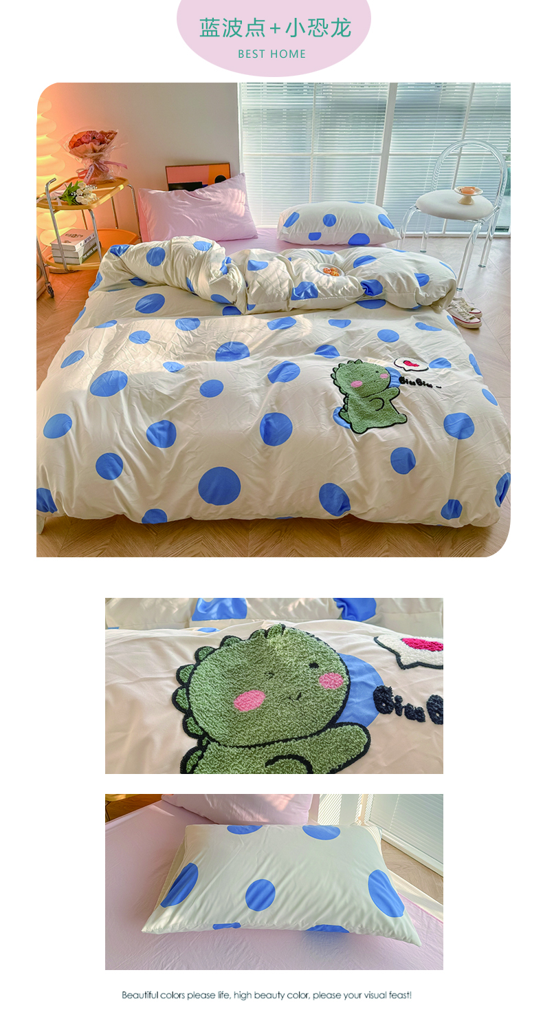 (总)子钦家纺 2024新款水洗棉多巴胺混搭毛巾绣四件套