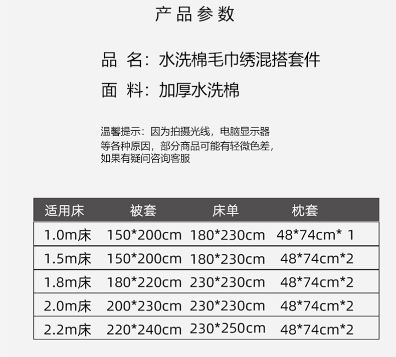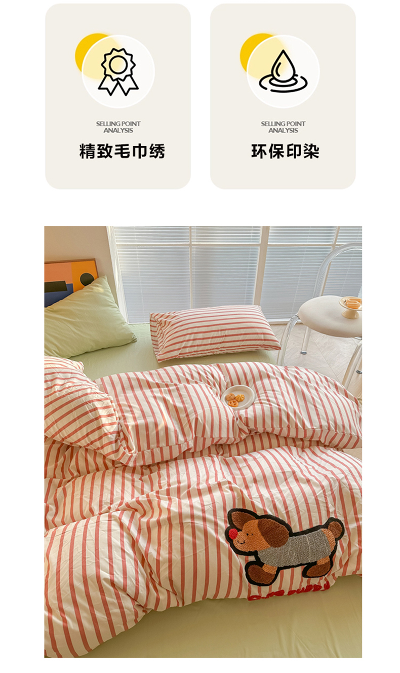 商品名称:(总)子钦家纺 2024新款水洗棉多巴胺混搭毛巾绣四件套