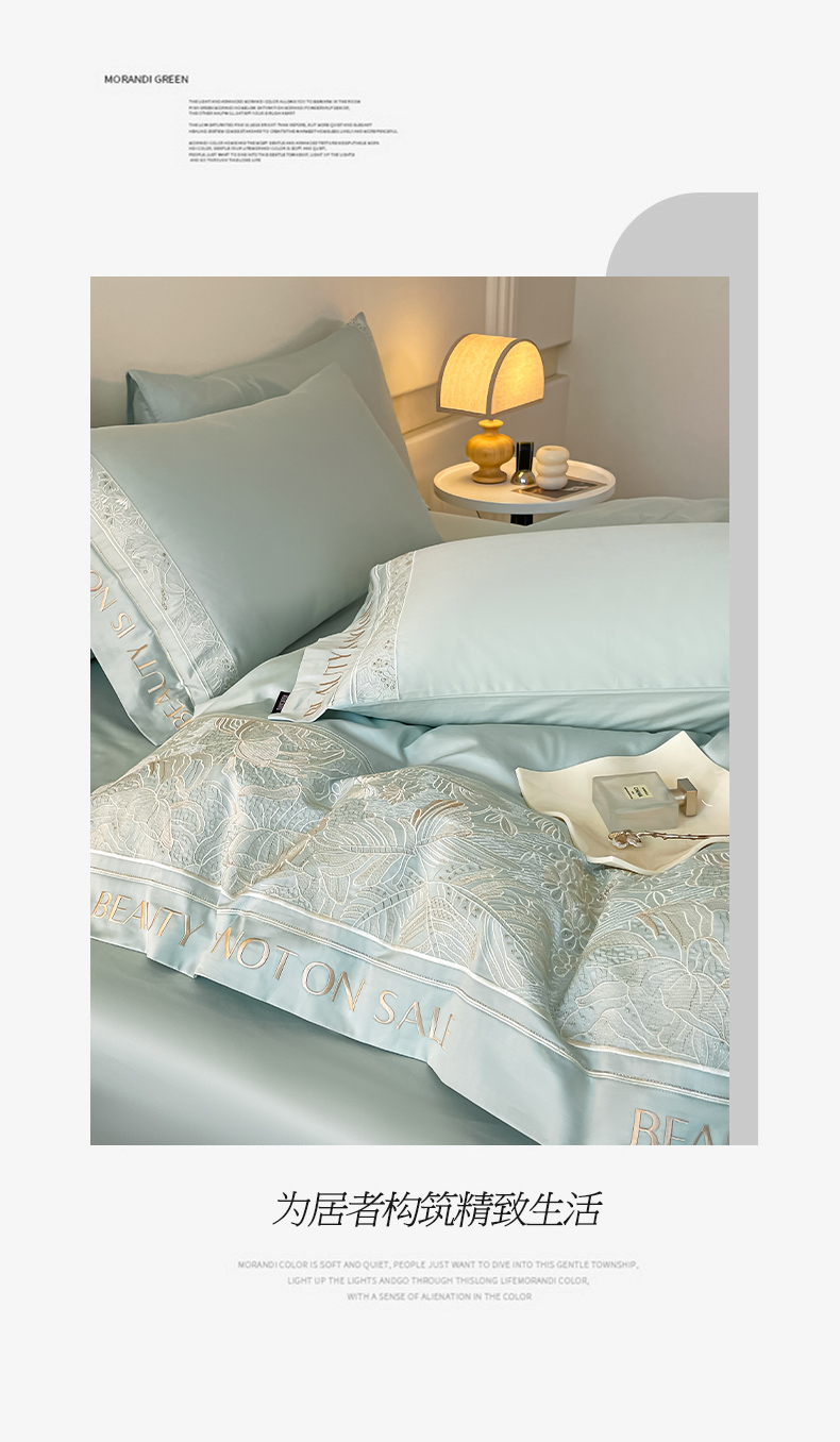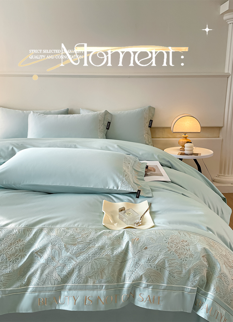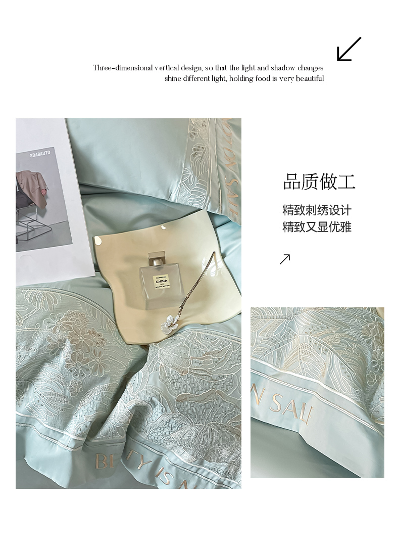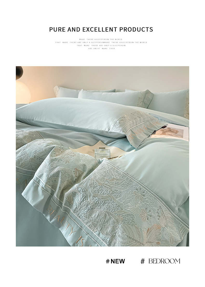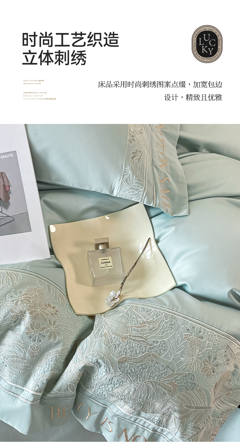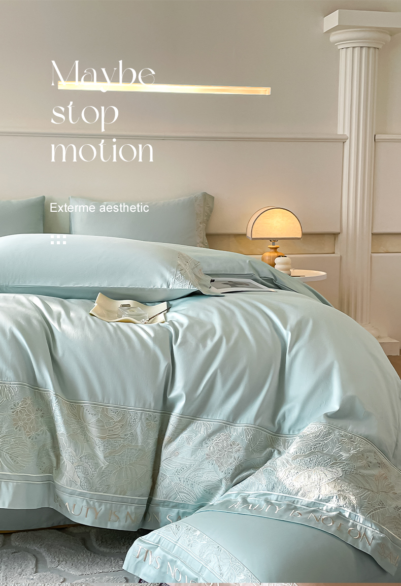 当前位置: 91家纺网 > 商品网购 > 床品套件 > 四件套 > 长绒棉四件套 > 【2024春夏爆款】100支长绒棉四件套全棉纯棉轻奢风重工刺绣纯色床单被套酒店风床上用品 清悦-天水蓝