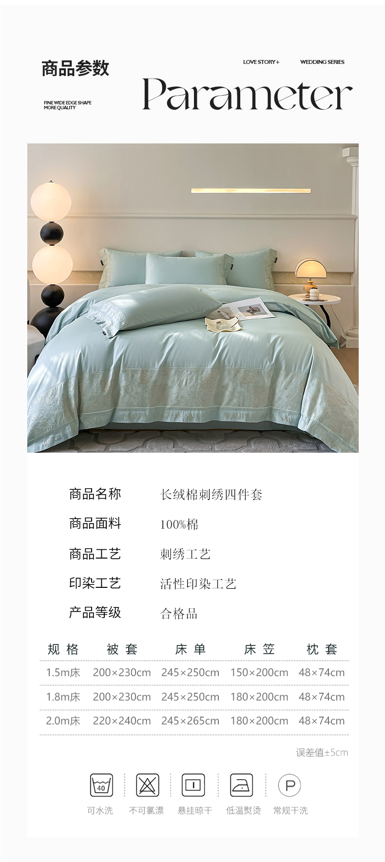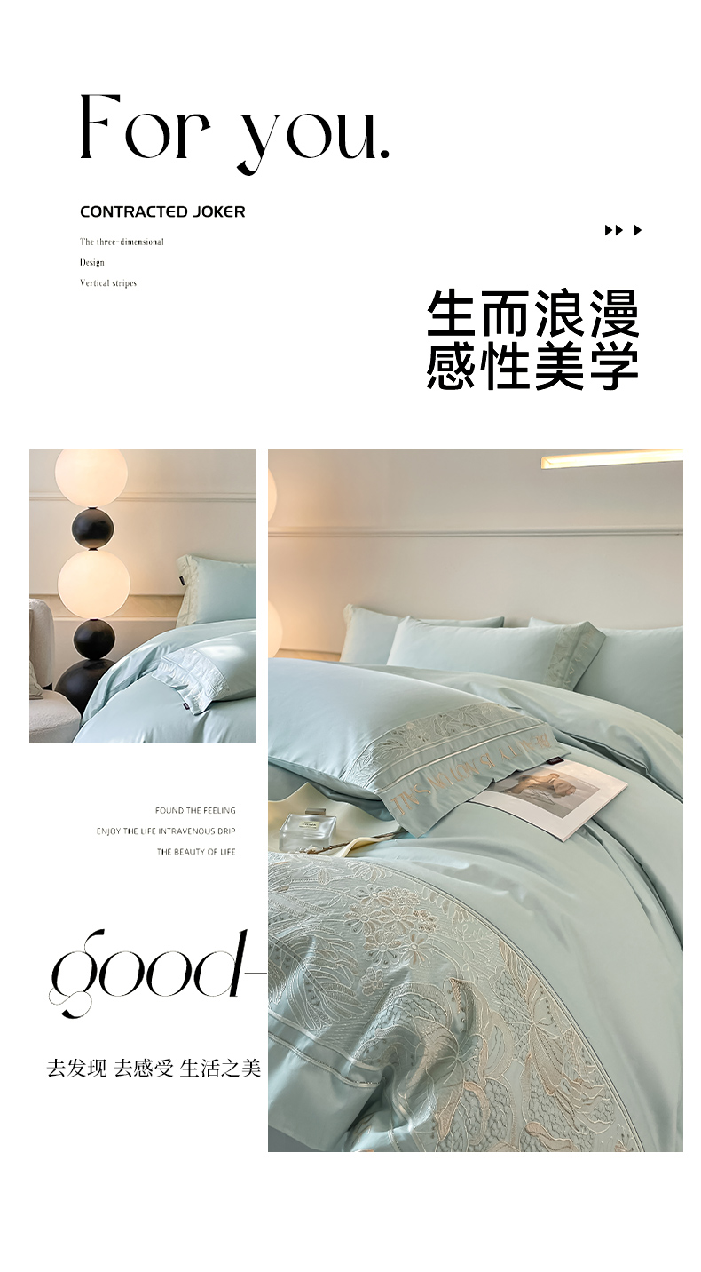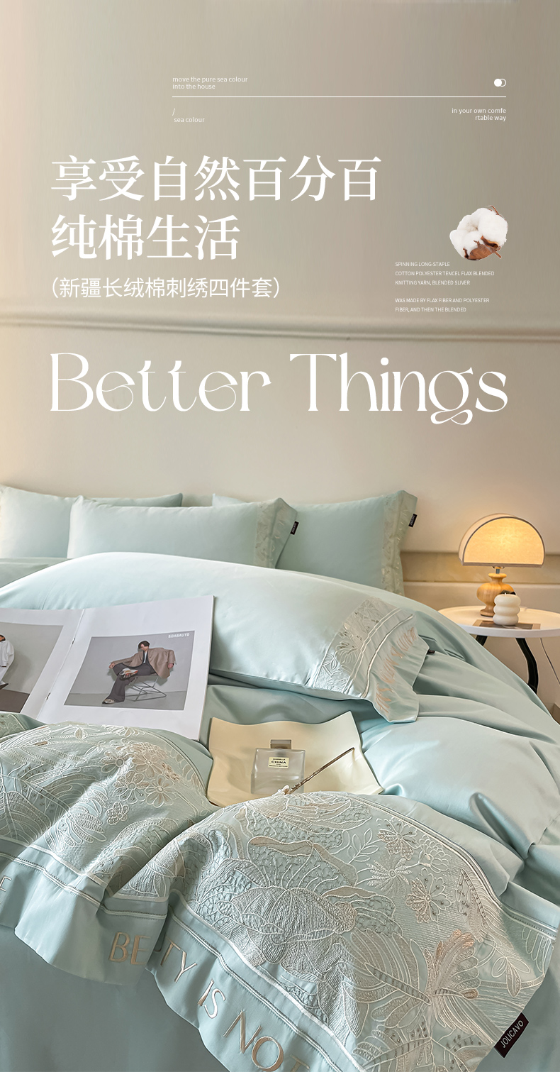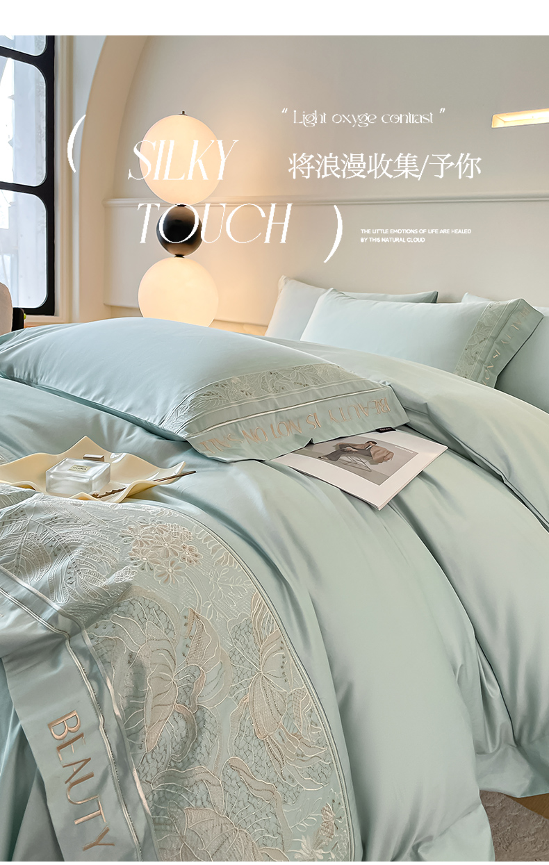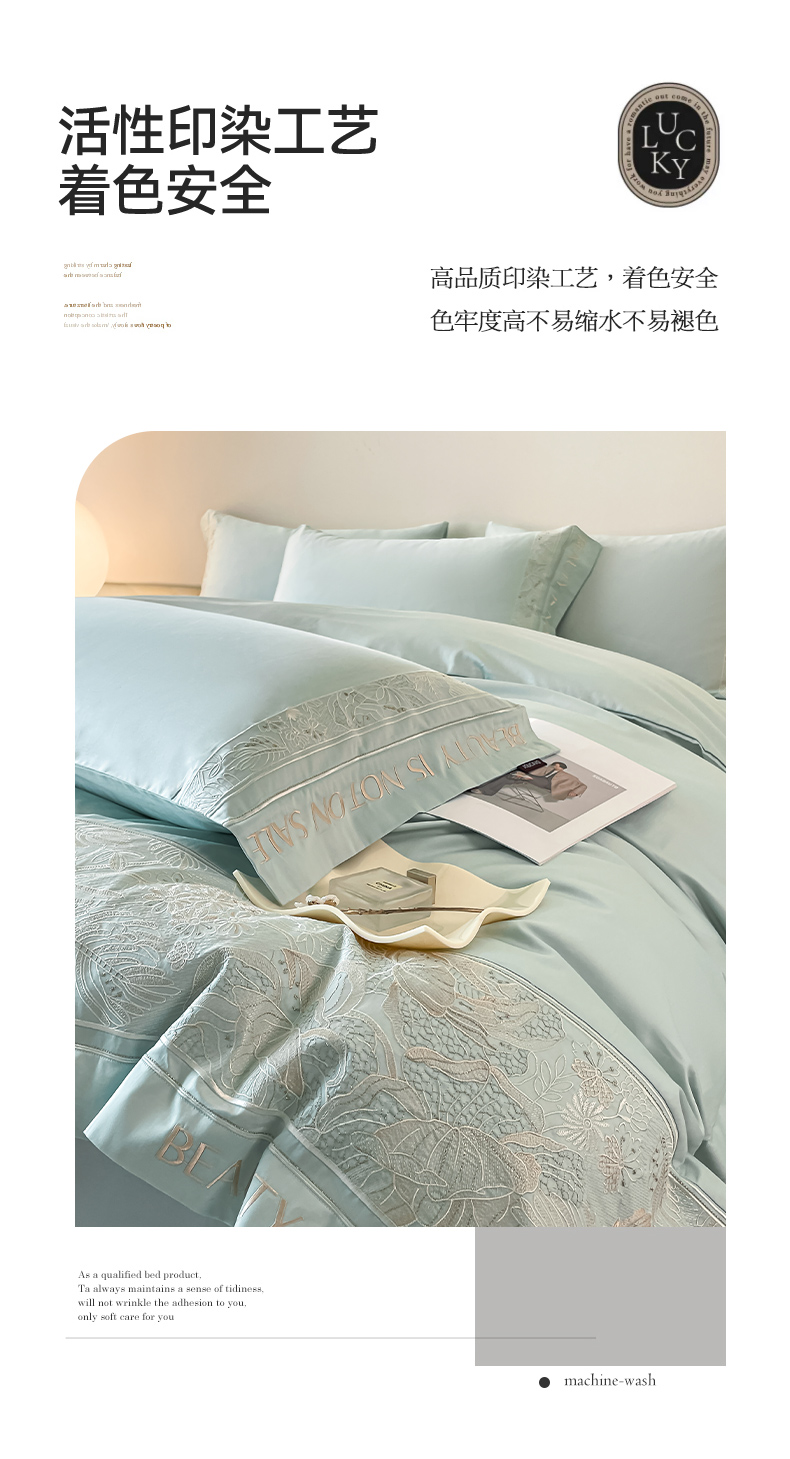 当前位置: 91家纺网 > 商品网购 > 床品套件 > 四件套 > 长绒棉四件套 > 【2024春夏爆款】100支长绒棉四件套全棉纯棉轻奢风重工刺绣纯色床单被套酒店风床上用品 清悦-天水蓝