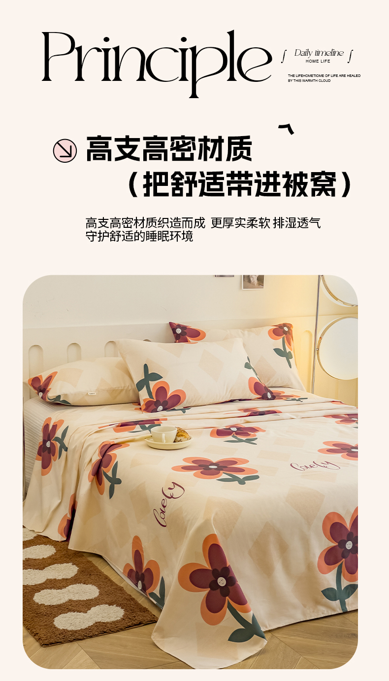 • 91家纺网 家纺一手货源 找家纺 棉乐町家居 2025新款全棉老粗布床单 花随
