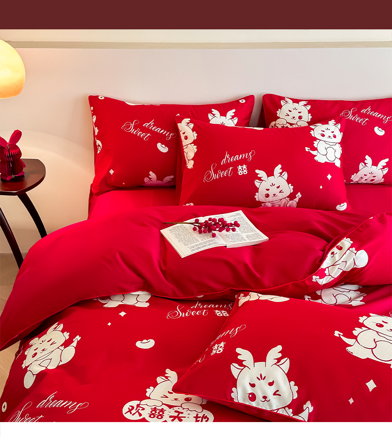 商品名称:(总)金麦 2024新款亲肤棉龙年婚庆印花四件套
