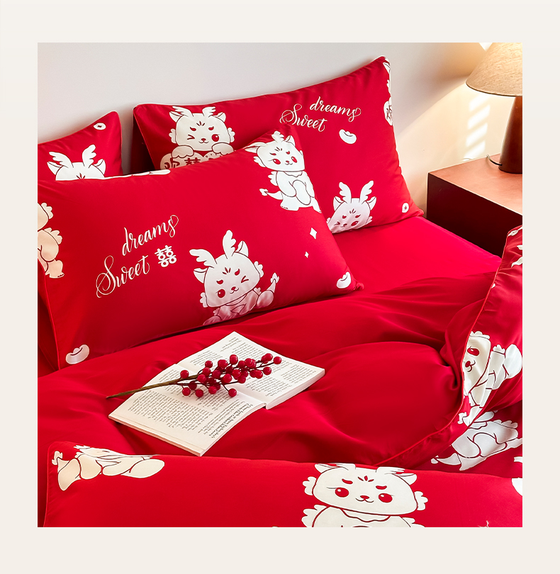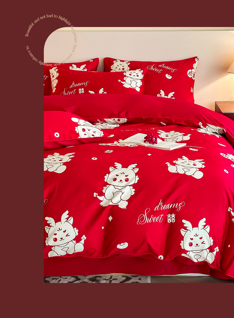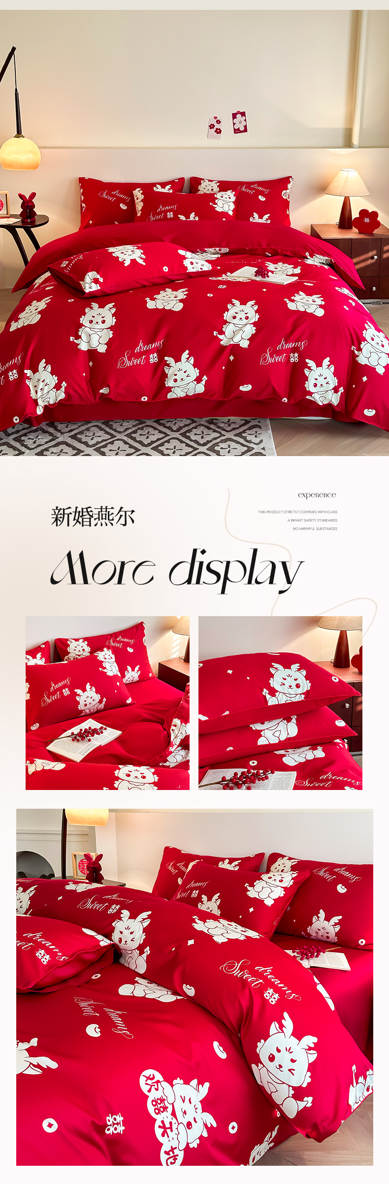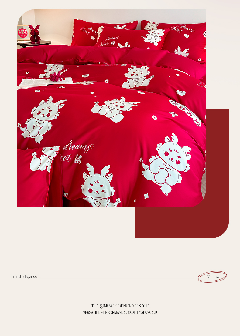 (总)金麦 2024新款亲肤棉龙年婚庆印花四件套