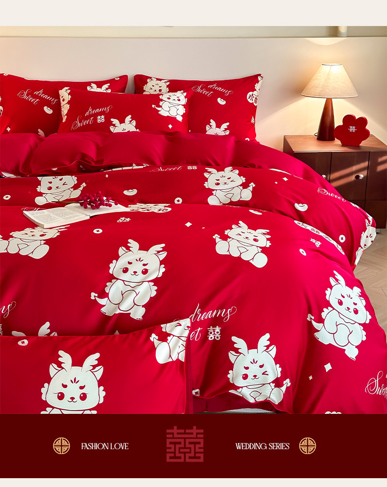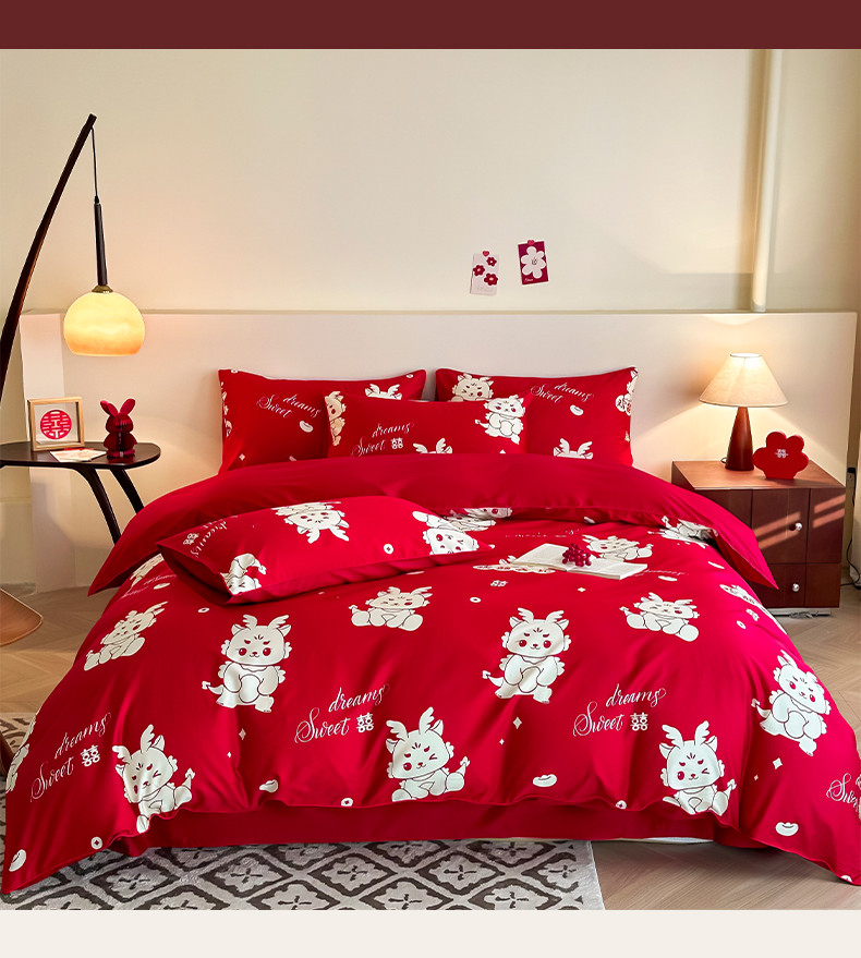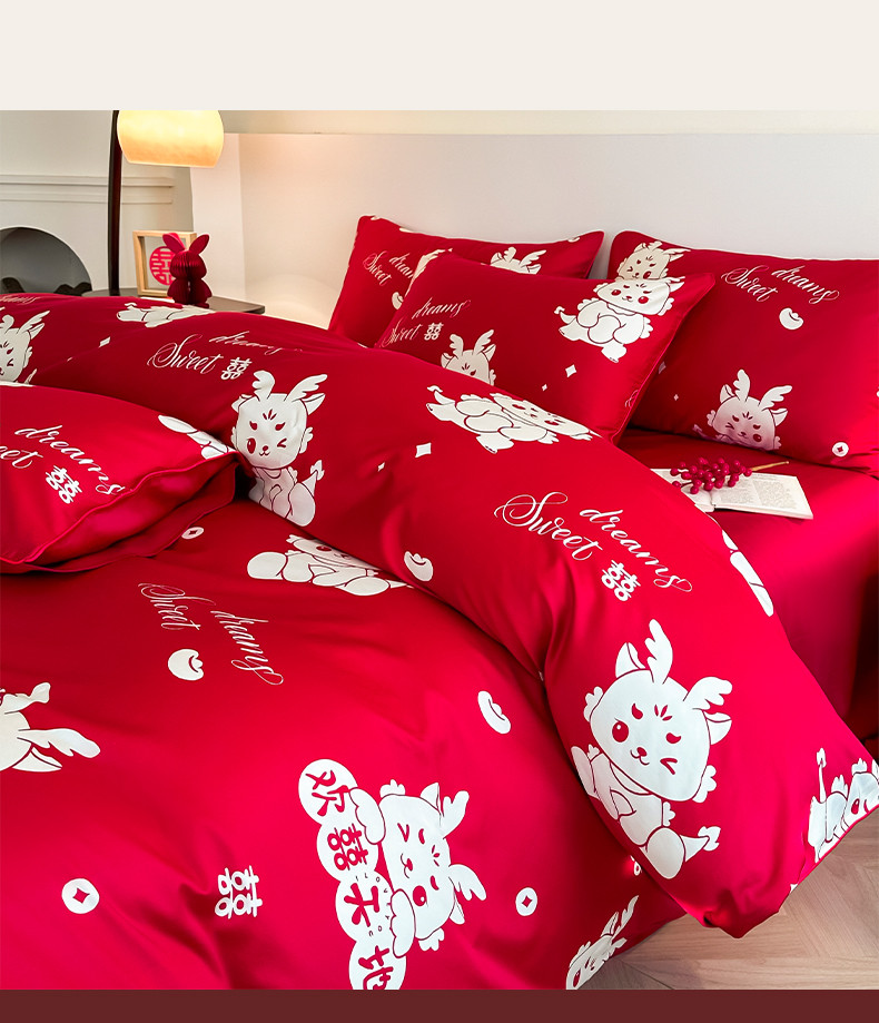 金麦 2024新款亲肤棉龙年婚庆印花四件套新婚燕尔