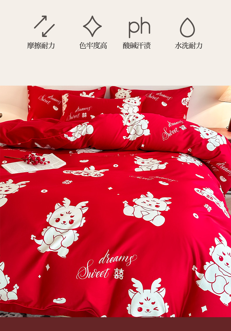 商品名称:金麦 2024新款亲肤棉龙年婚庆印花四件套新婚燕尔