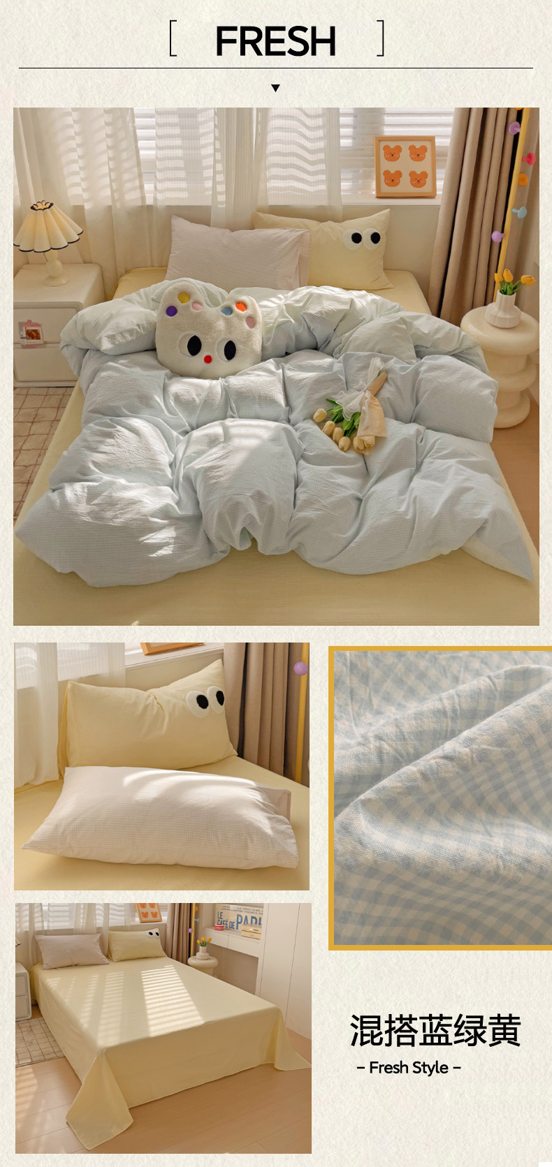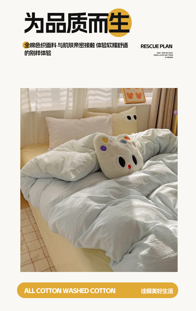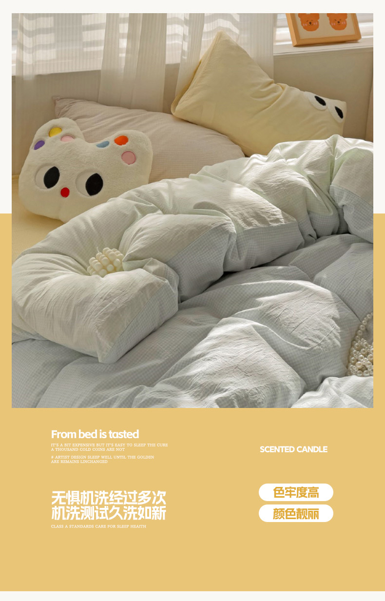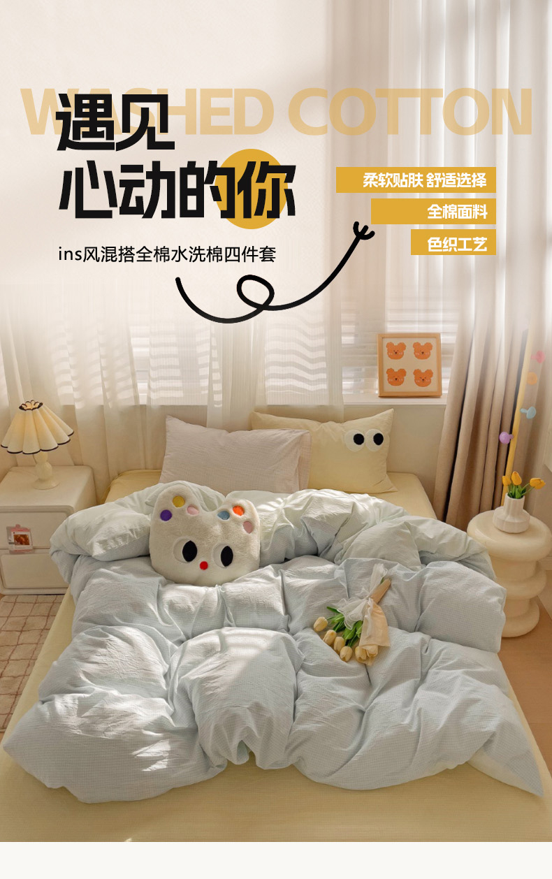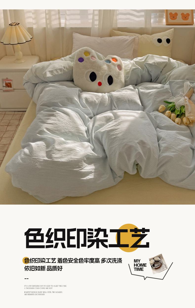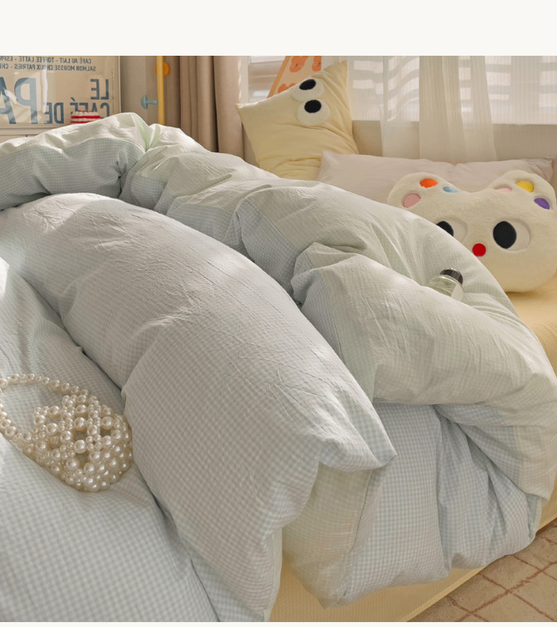 当前位置: 91家纺网 > 商品网购 > 床品套件 > 四件套 > 水洗棉四件套 > 丽涵家纺 2024新款ins风混搭水洗棉全棉毛巾绣系列格子四件套 混搭蓝绿黄