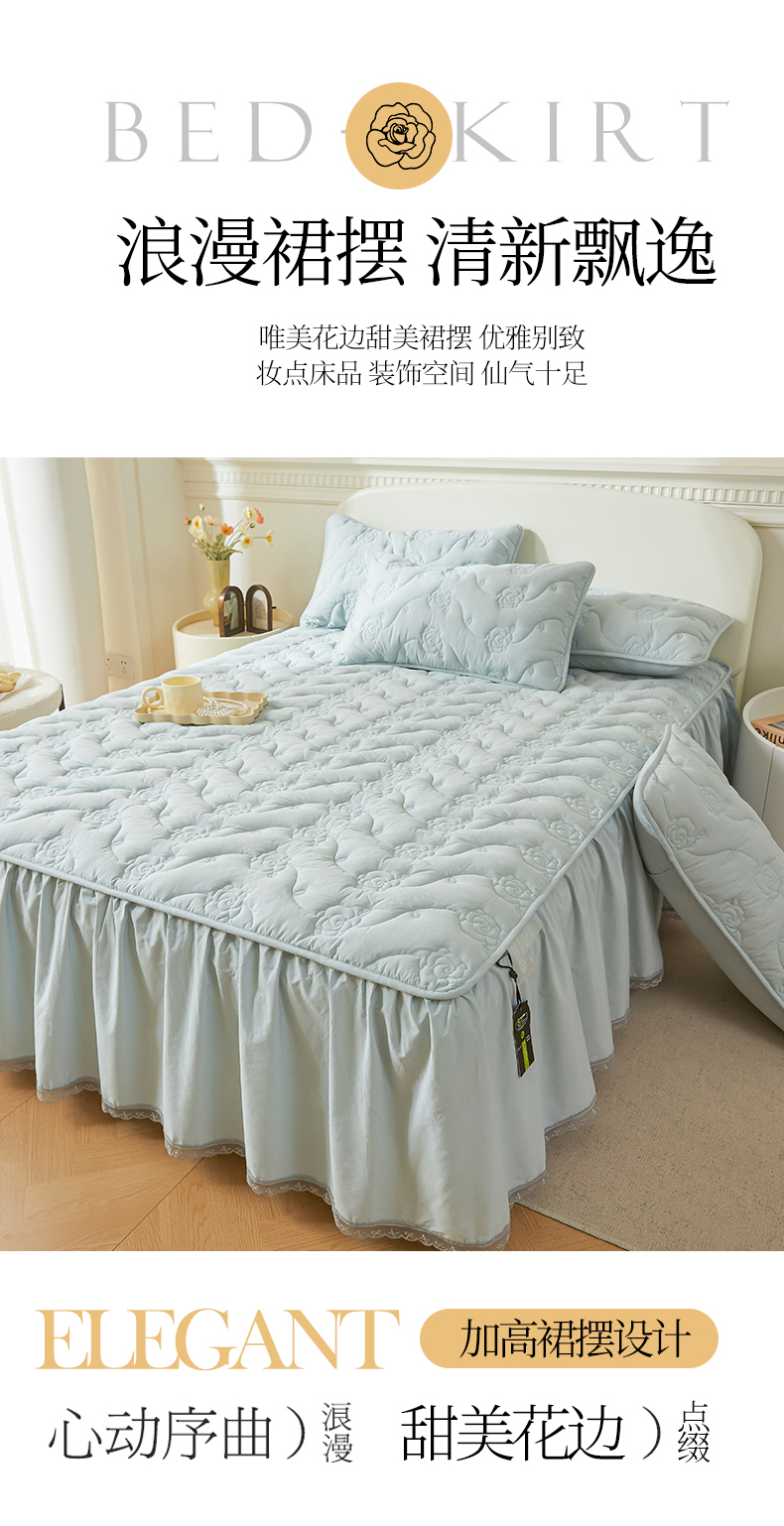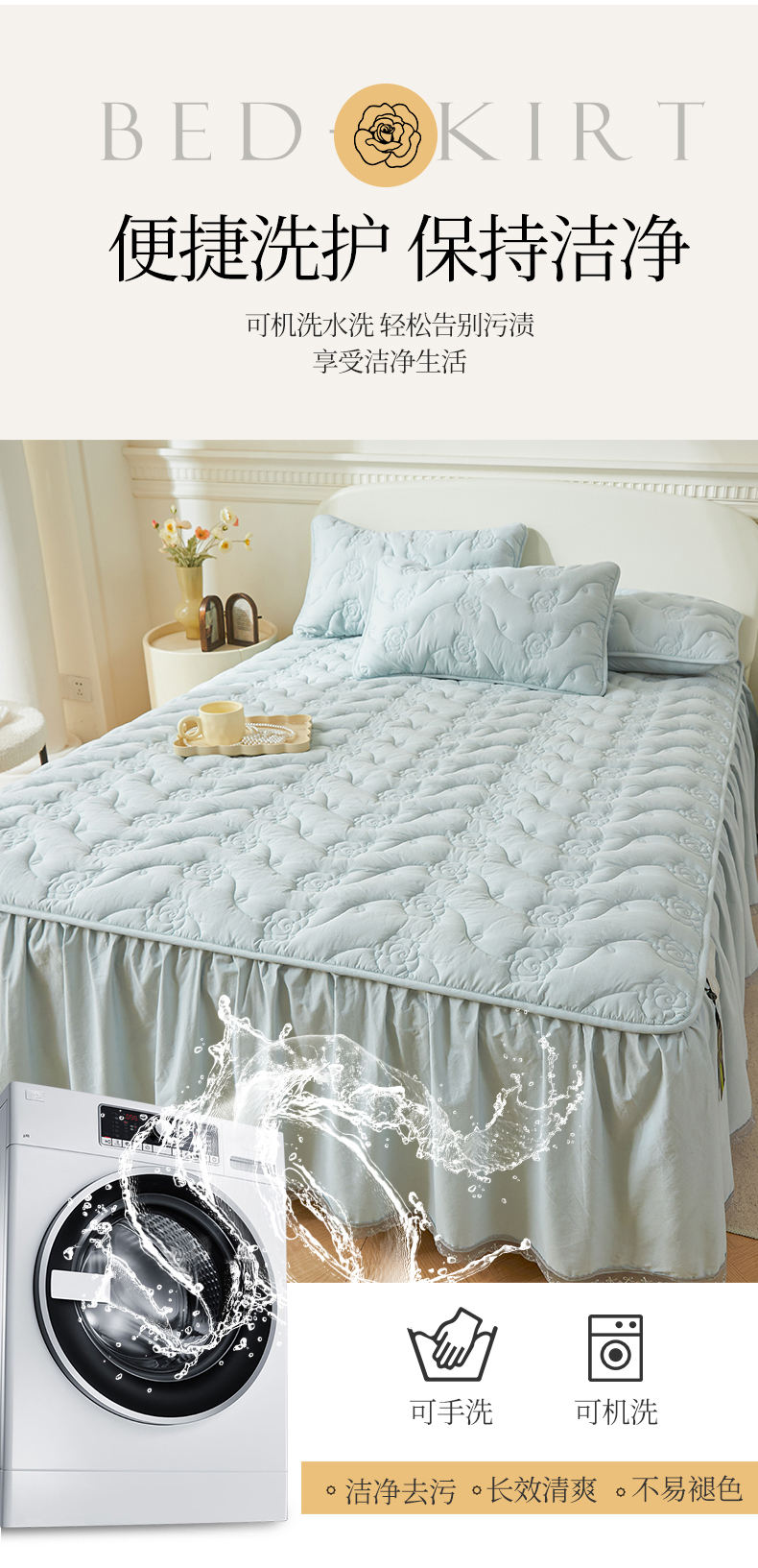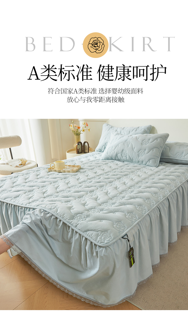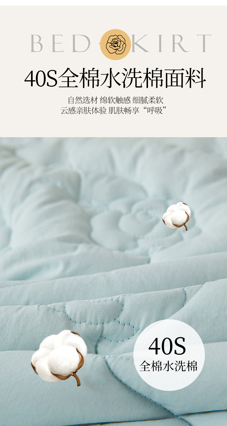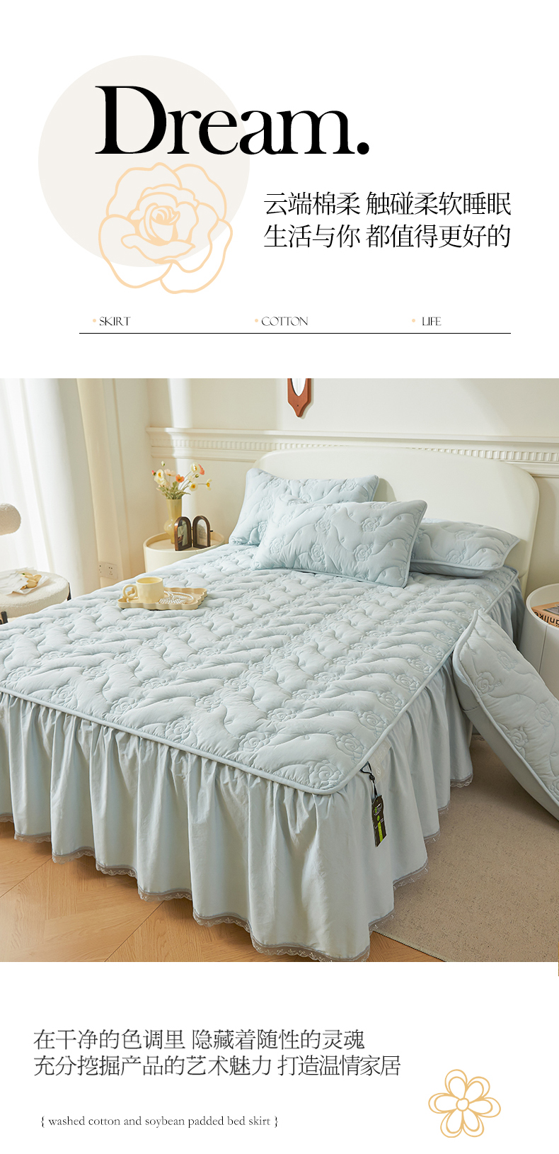 3C 2024新款玫瑰全棉水洗棉大豆夹棉床裙 婴儿蓝