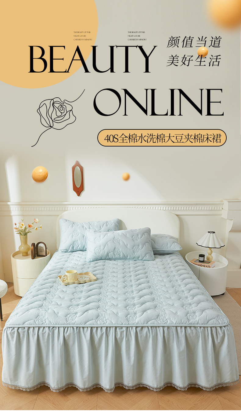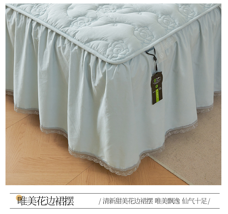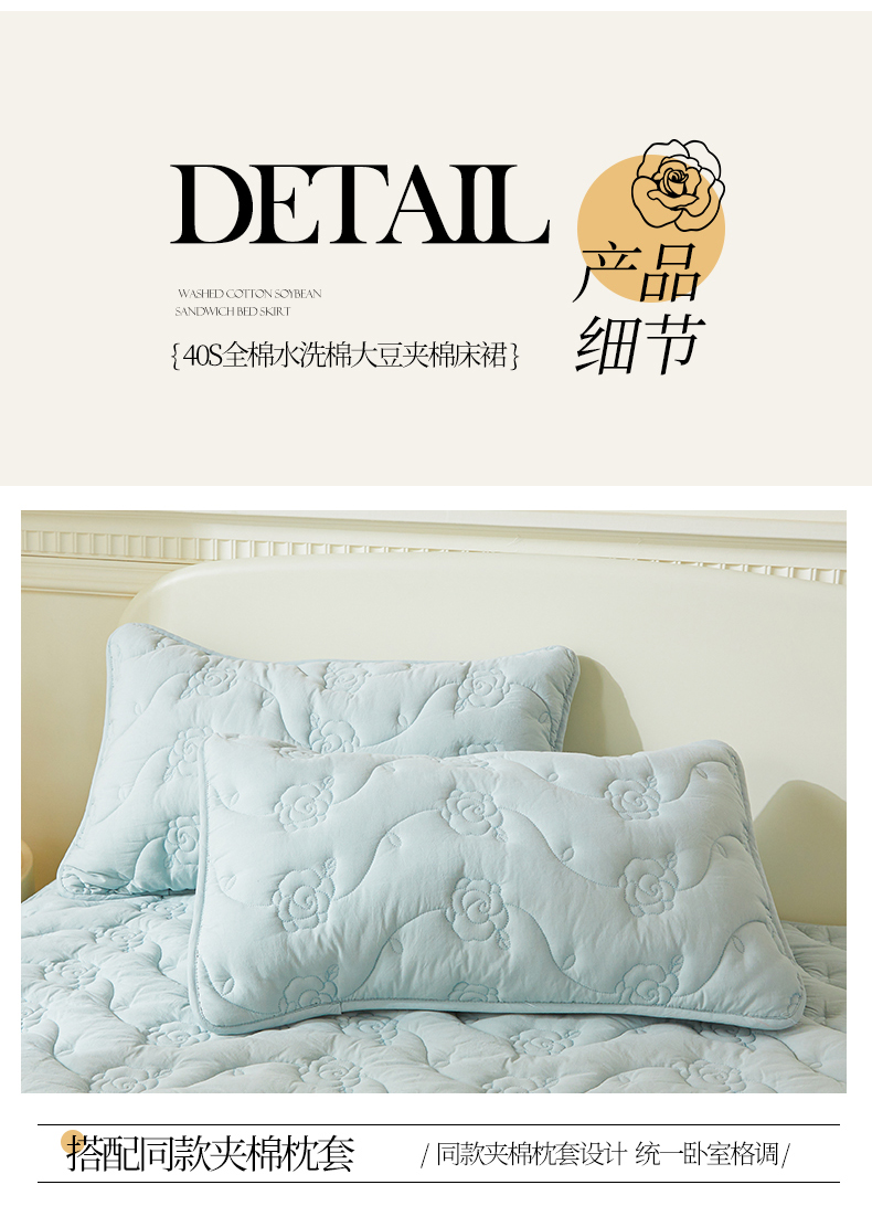 商品名称:3C 2024新款玫瑰全棉水洗棉大豆夹棉床裙 婴儿蓝