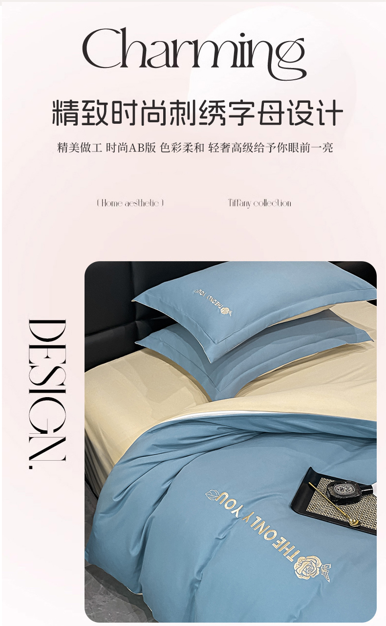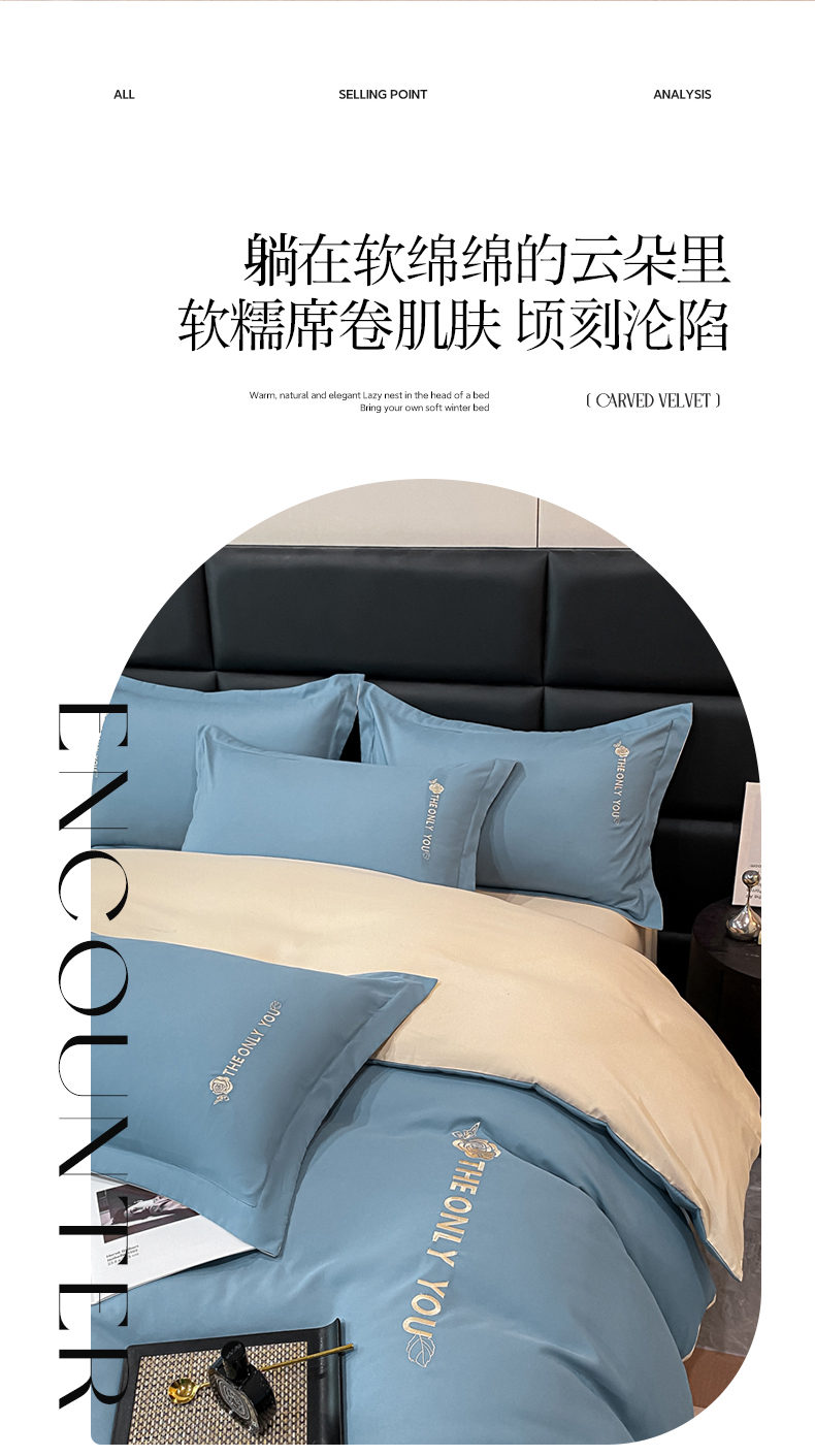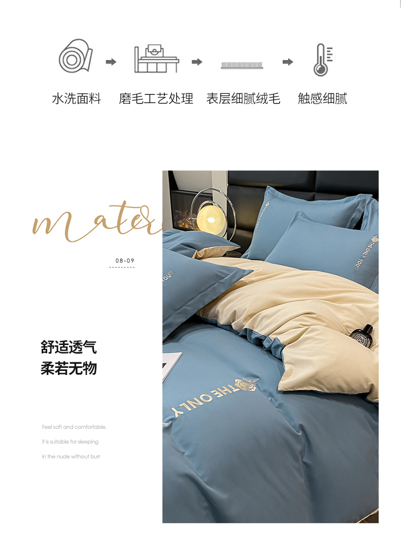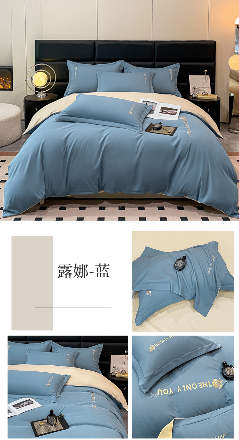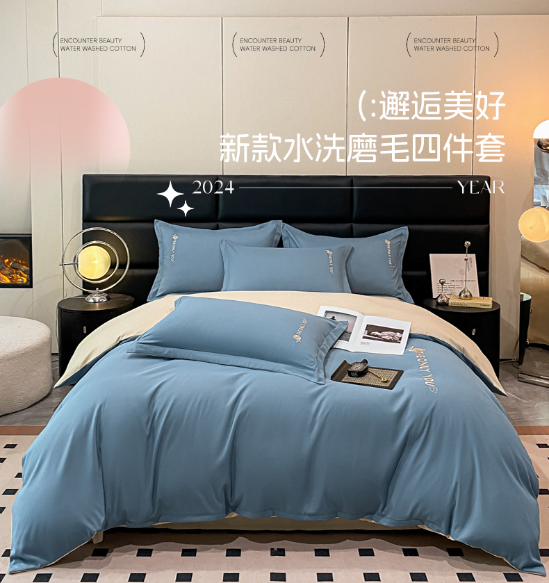 商品名称:N先生2024新款水洗磨毛四件套-露娜系列 蓝