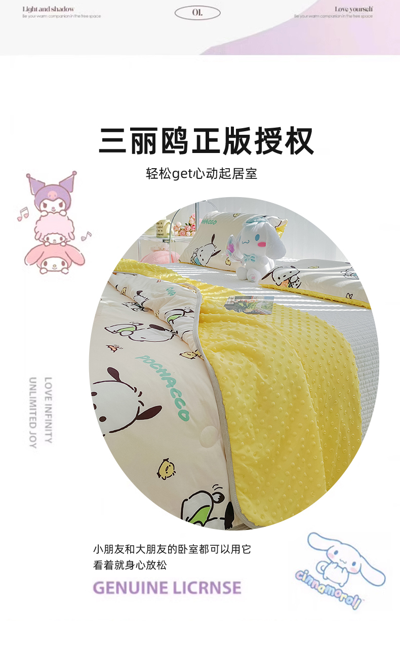 (总)米米儿家纺 2024新款A类针织棉凉豆豆夏被夏凉被空调被-三丽鸥系列,可爱帕恰狗-蓝,可爱帕恰狗-黄,搞怪库洛米,星星-玉桂狗,月亮-玉桂狗,木马-美乐蒂,棒棒糖-玉桂狗,樱桃美乐蒂,欢乐美乐蒂,爱心库洛米,紫色库洛米,草莓美乐蒂,镜子-玉桂狗,黑白-帕恰狗