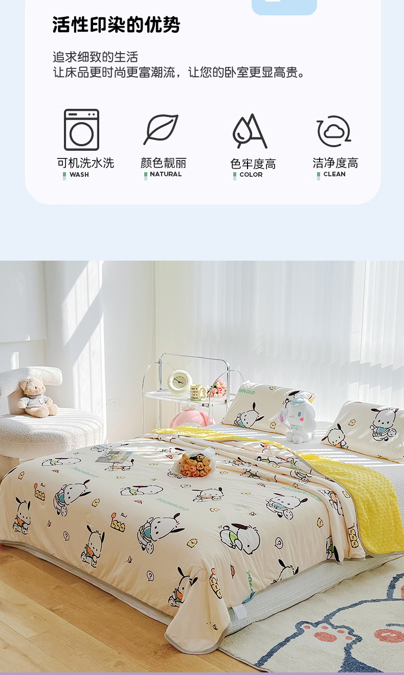 商品名称:米米儿家纺 2024新款A类针织棉凉豆豆夏被夏凉被空调被-三丽鸥系列 可爱帕恰狗-黄