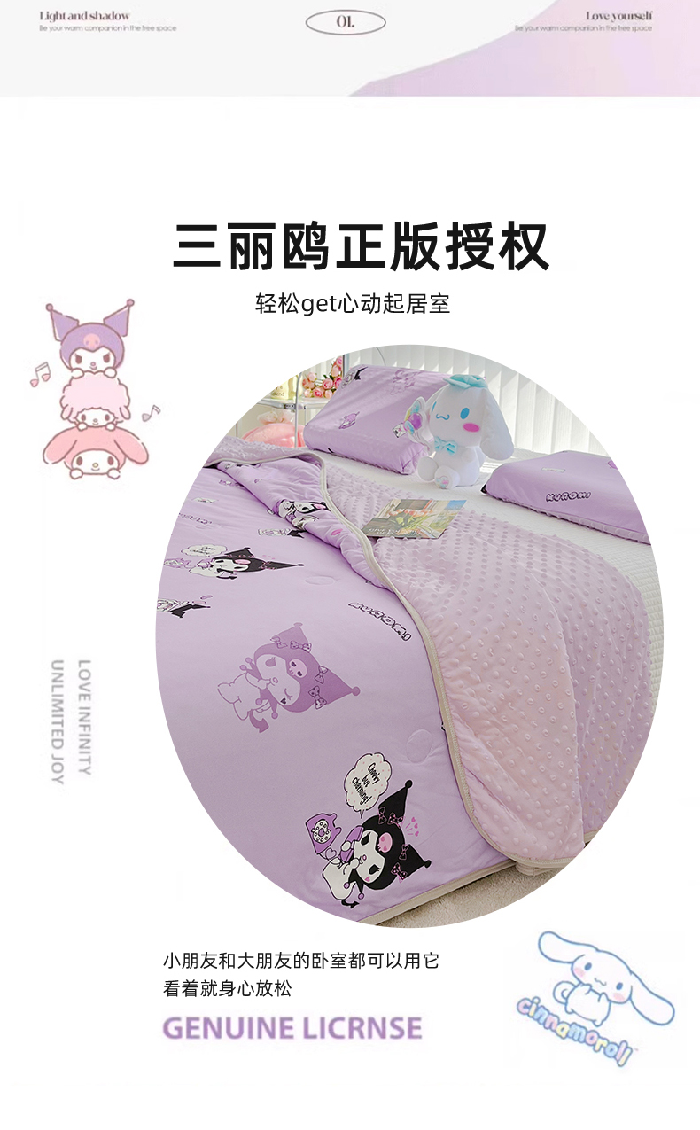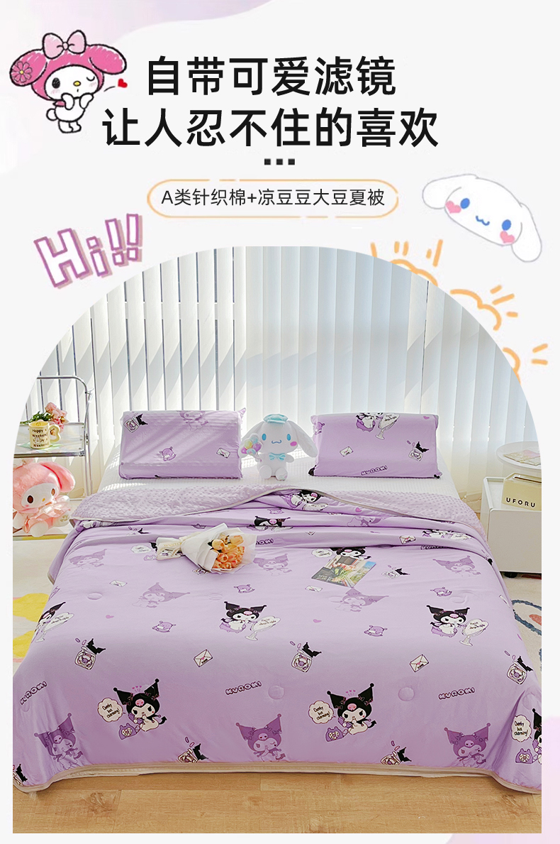 米米儿家纺 2024新款A类针织棉凉豆豆夏被夏凉被空调被-三丽鸥系列 紫色库洛米