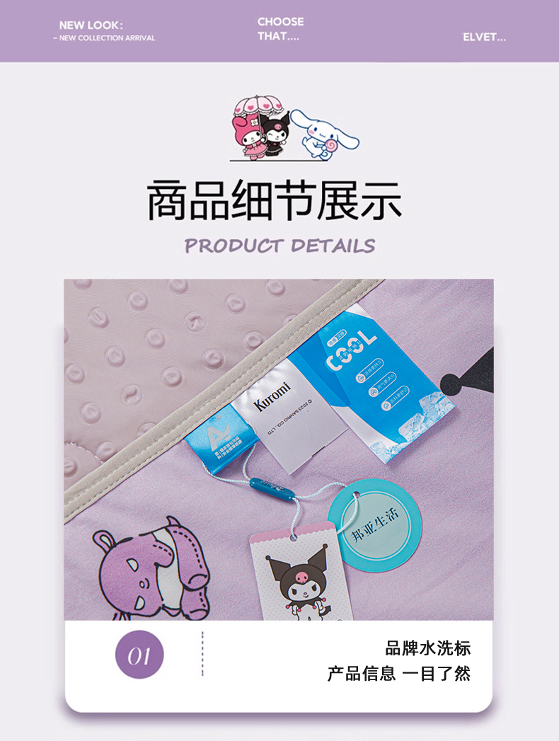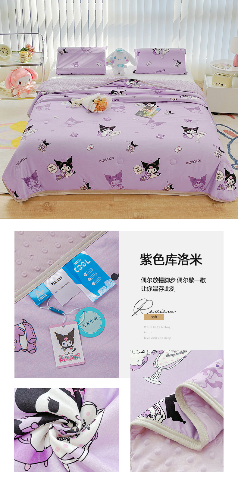 商品名称:米米儿家纺 2024新款A类针织棉凉豆豆夏被夏凉被空调被-三丽鸥系列 紫色库洛米