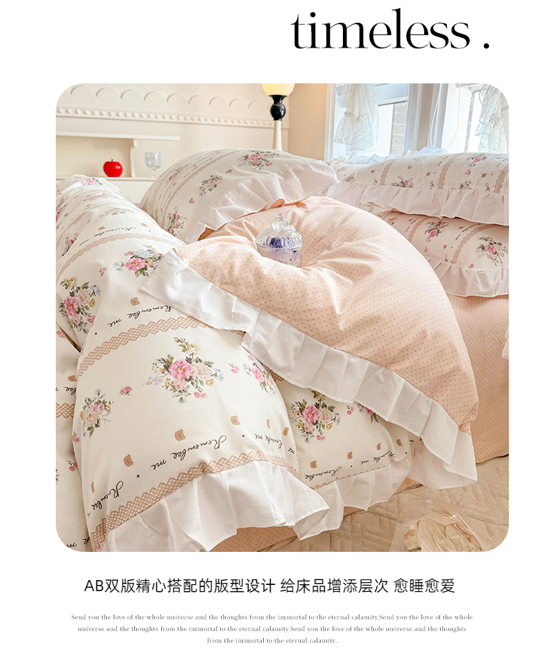 简宜家居(朝初家纺) 2025新款40支斜纹全棉花边款四件套 粉色色卡