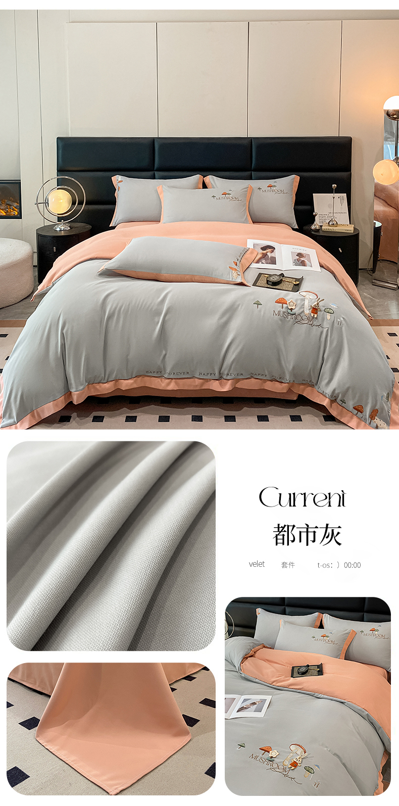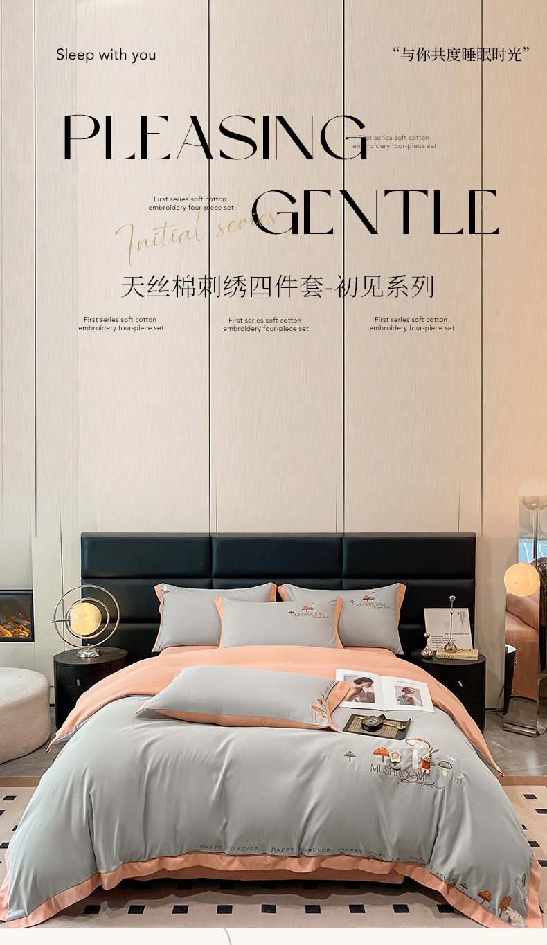 七七家纺 2025新款天丝棉刺绣四件套-初见系列 都市灰