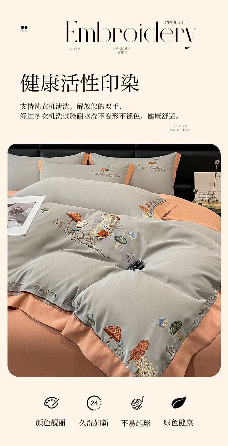 (总)七七家纺 2025新款水洗棉刺绣四件套梦见系列,梦见豆沙,梦见粉,梦见黄,梦见蓝,梦见紫