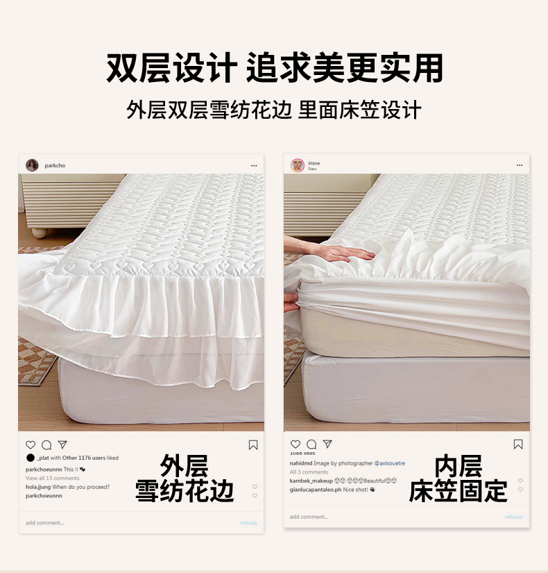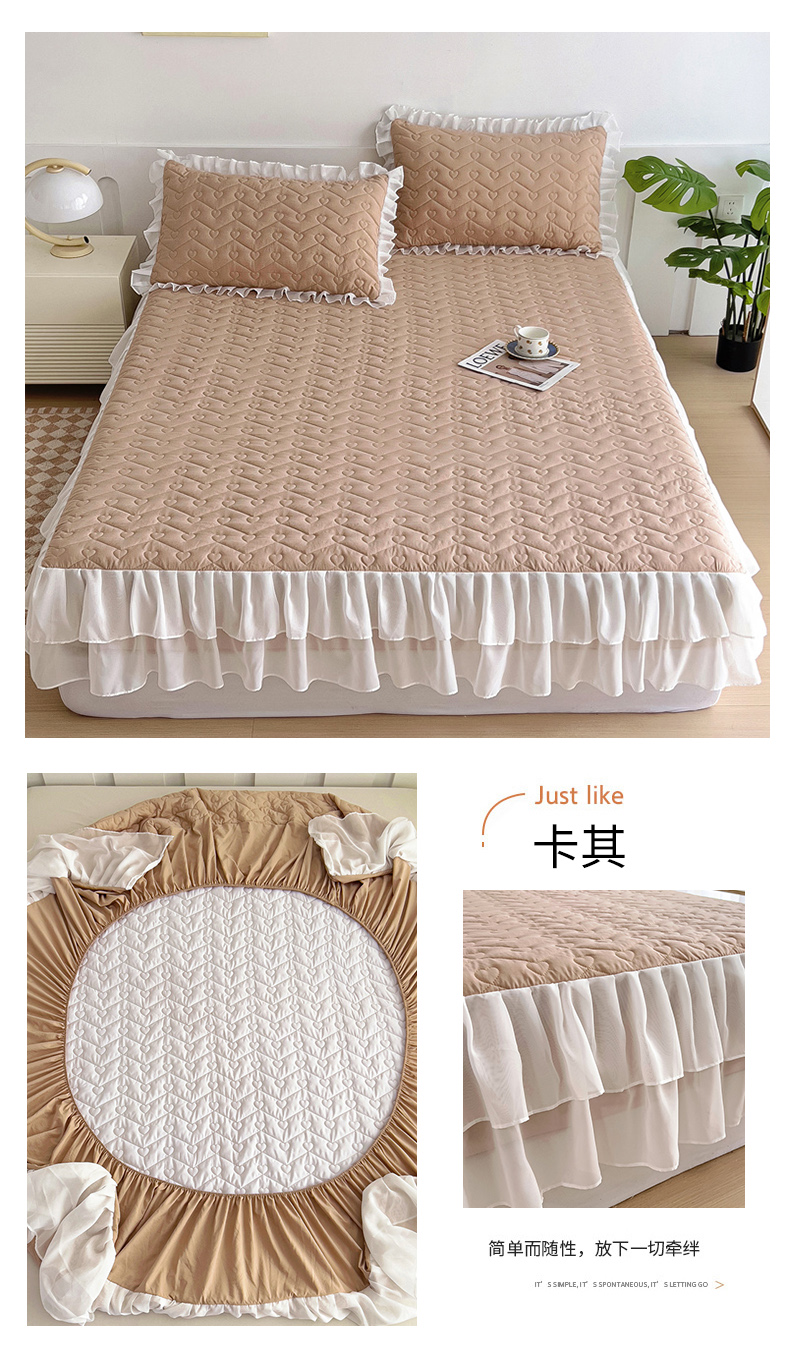 (总)屹成家纺2025新款水晶绒夹棉绗缝蕾丝床裙三件套(塞纳河畔)床裙单件起售价不低于105元,大红,豆沙,翡翠绿,粉玉,橄榄绿,蔚蓝,银灰