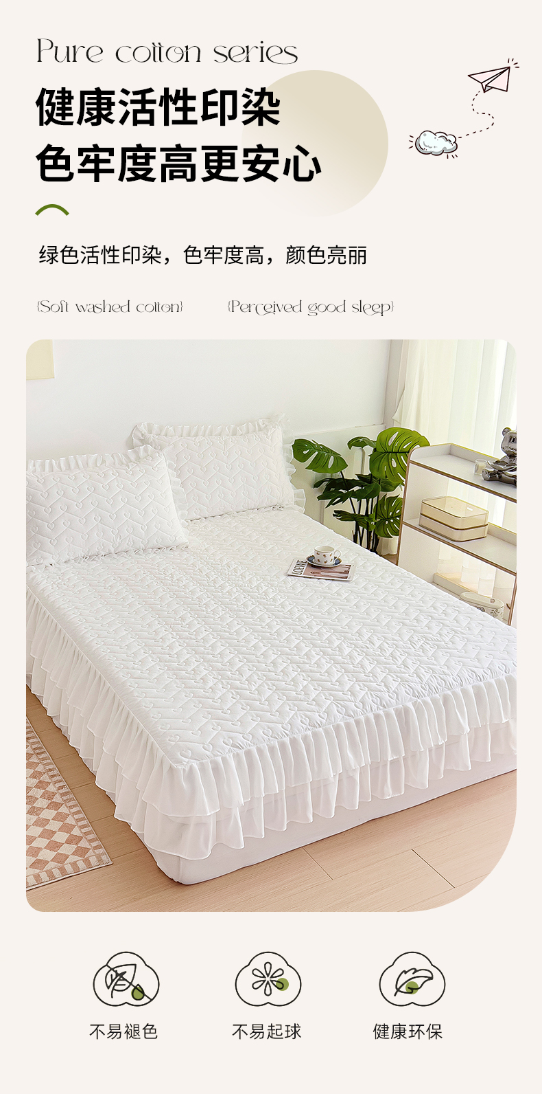 商品名称:屹成 2024新款水洗棉雪纺丽莎款单床笠 本白