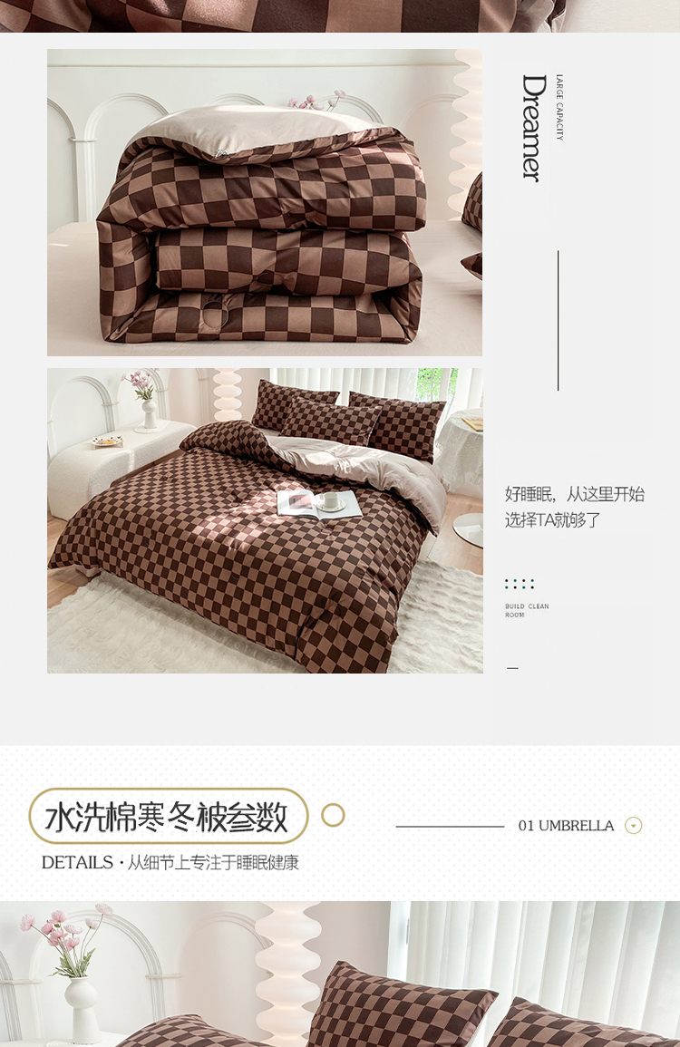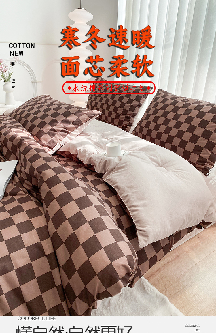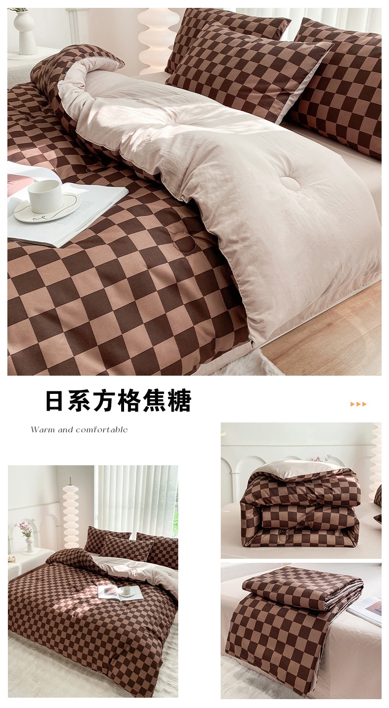 当前位置: 91家纺网 > 商品网购 > 床品套件 > 四件套 > 夏被四件套 > 啊雅家居 2025新款水洗棉条纹印花夏被冬被四件套-床单款 冬被 日系方格焦糖