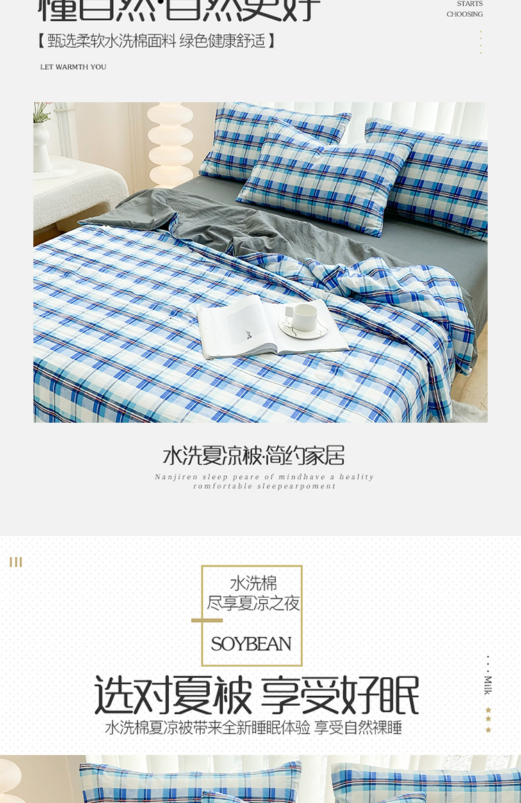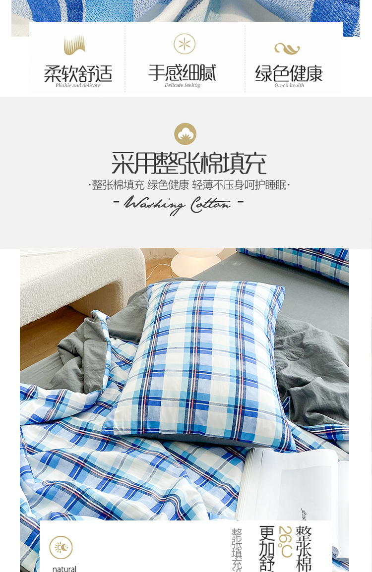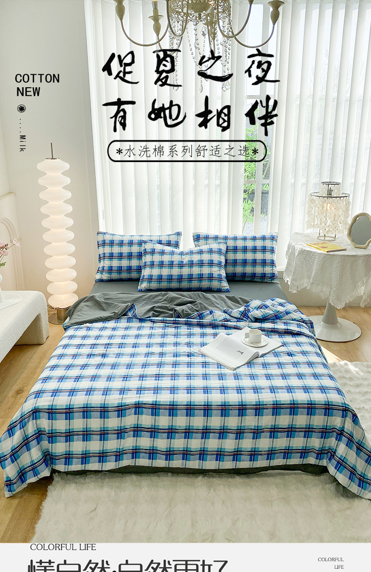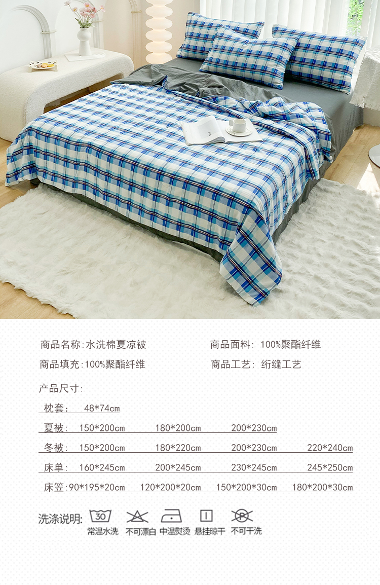 当前位置: 91家纺网 > 商品网购 > 床品套件 > 四件套 > 夏被四件套 > 啊雅家居2025新款水洗棉条纹印花夏被冬被四件套-床单款 夏被 日系条格蓝