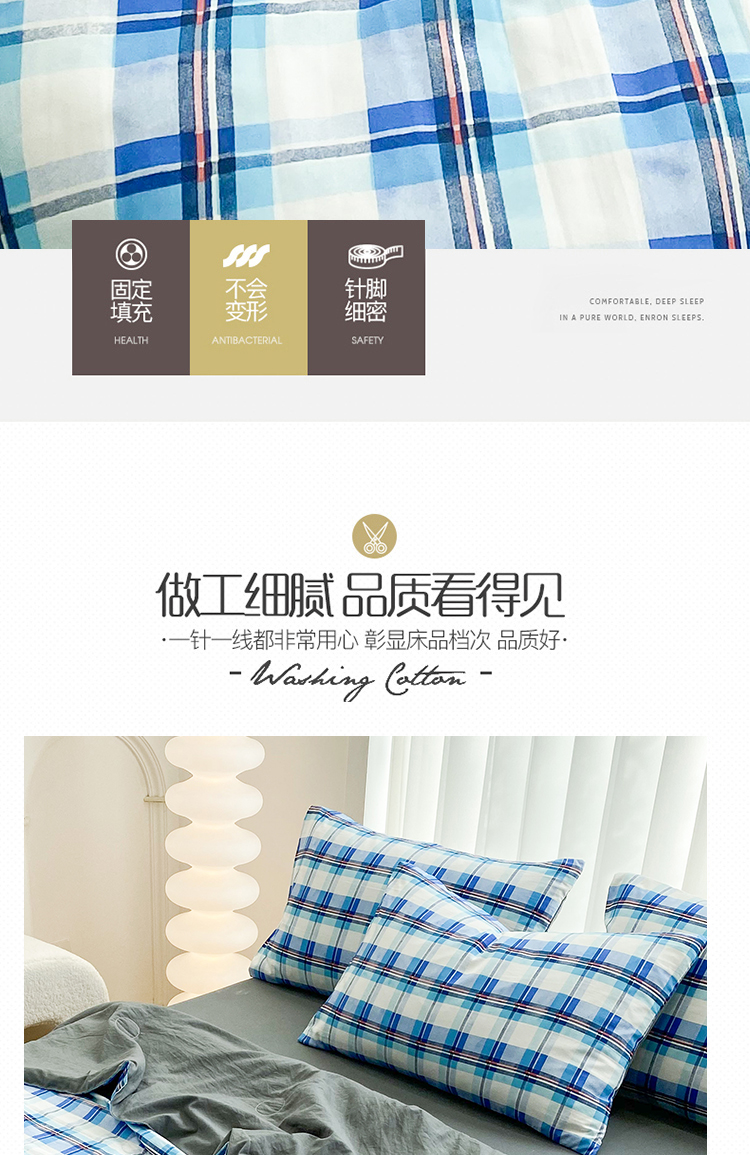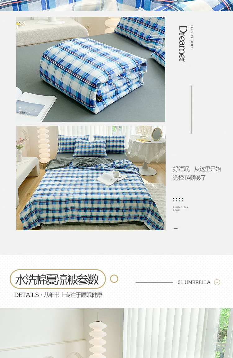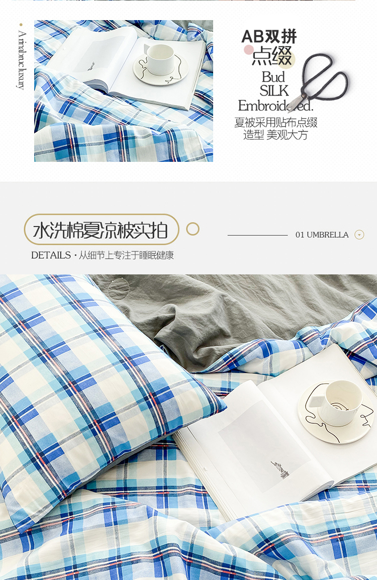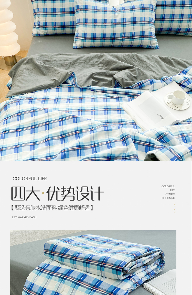 当前位置: 91家纺网 > 商品网购 > 床品套件 > 四件套 > 夏被四件套 > 啊雅家居2025新款水洗棉条纹印花夏被冬被四件套-床单款 夏被 日系条格蓝