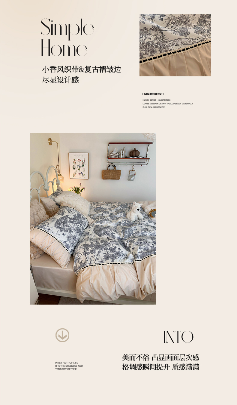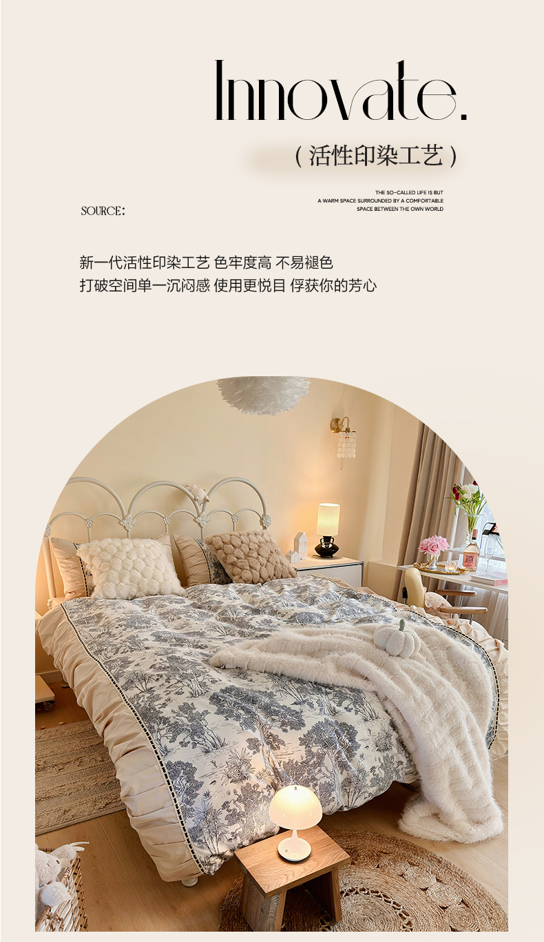 晨希家居 2024新款复古法式全棉印花四件套 丛林物语