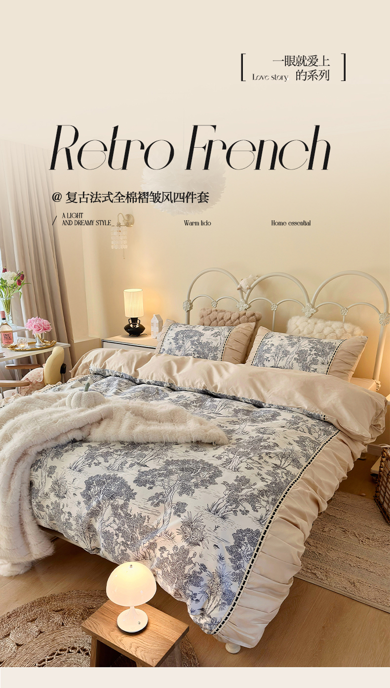 (总)晨希家居 2024新款复古法式全棉印花四件套,爱丽丝,丛林物语,繁花,丽芙,晚风告白