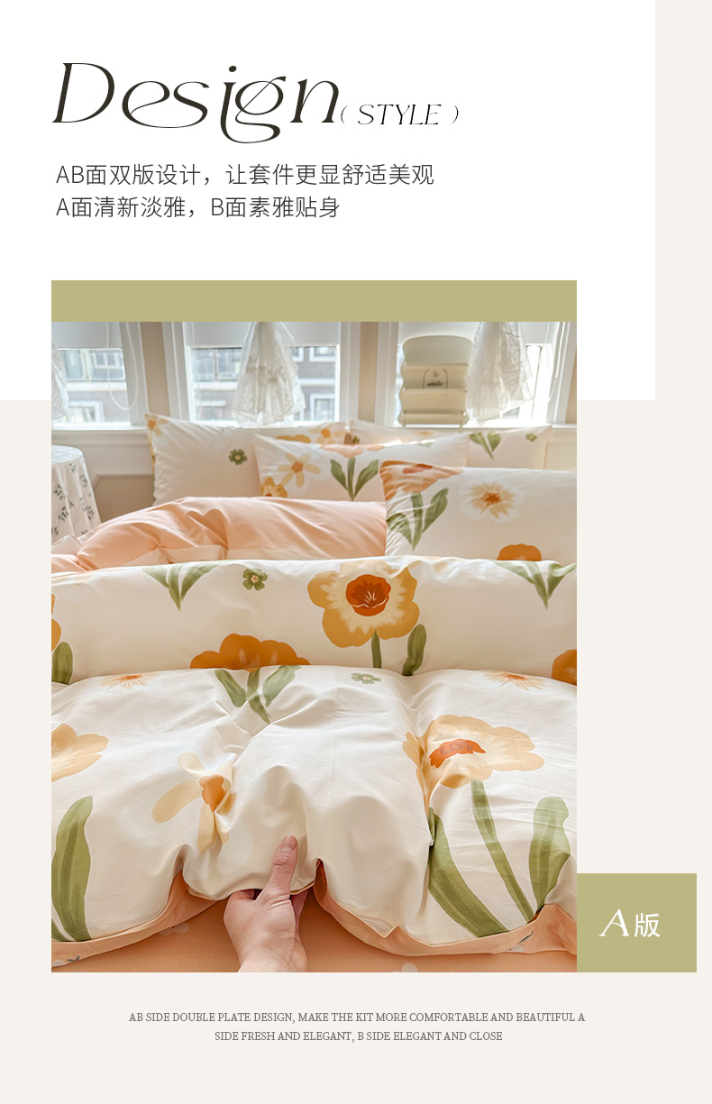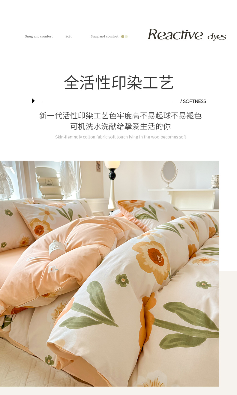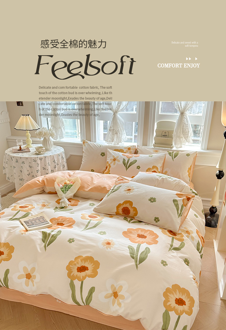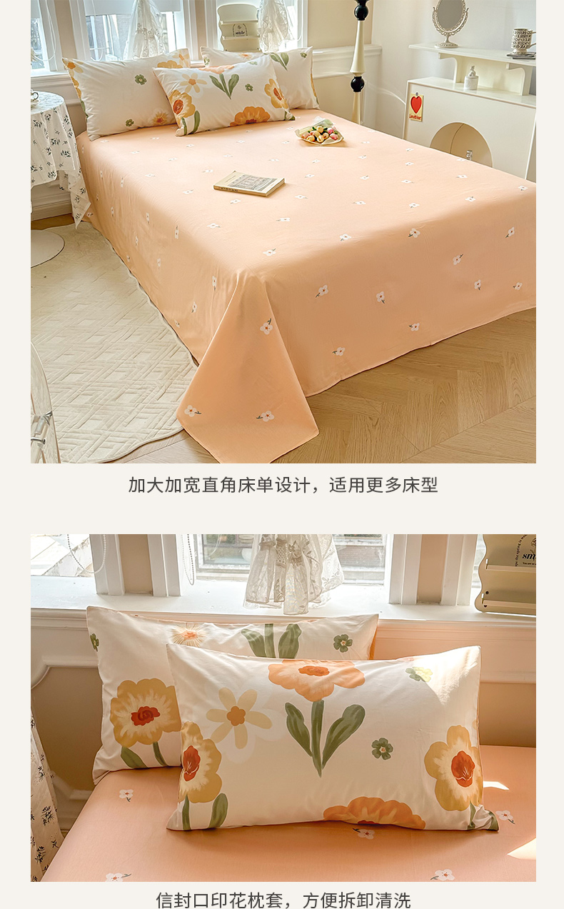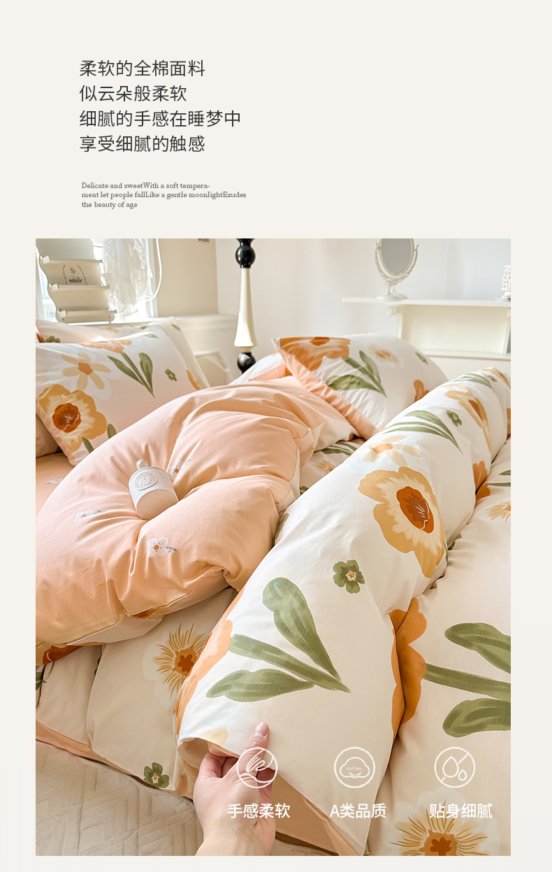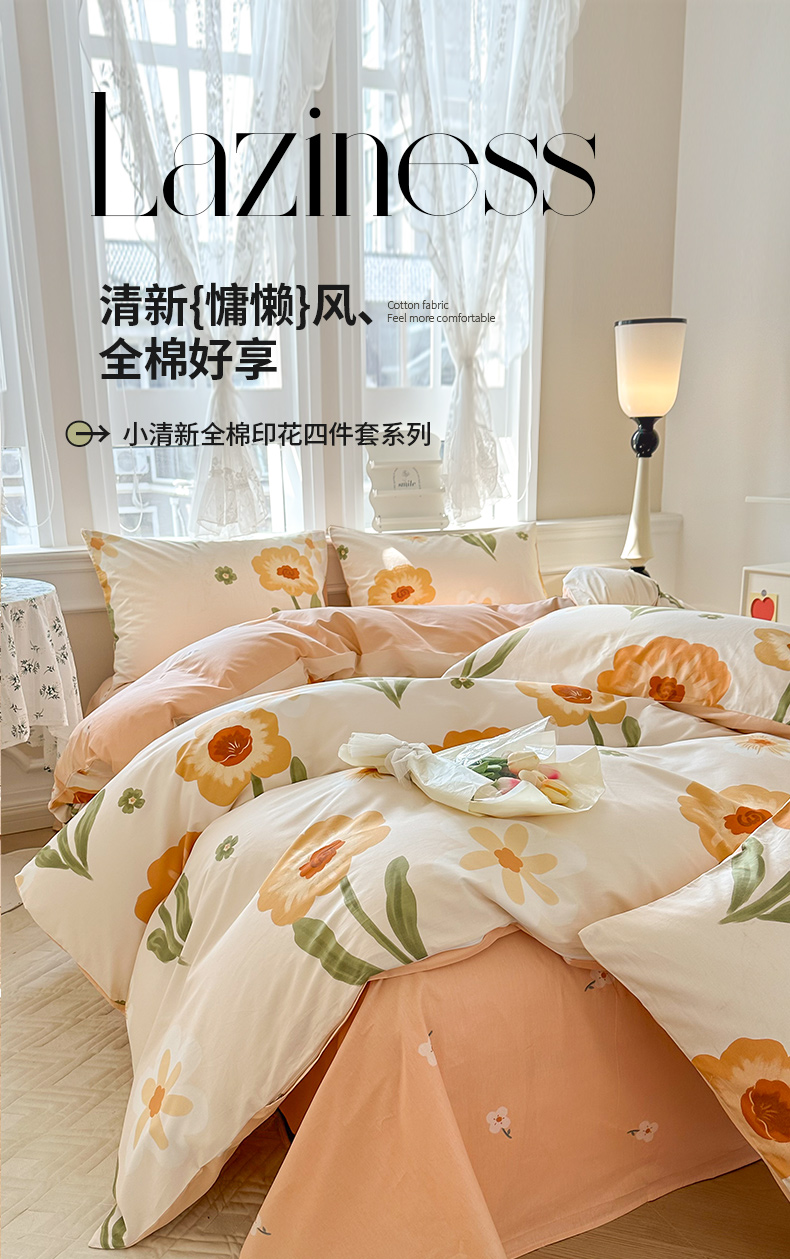 商品名称:晨希家居 2024新款小清新全棉印花四件套 花想容