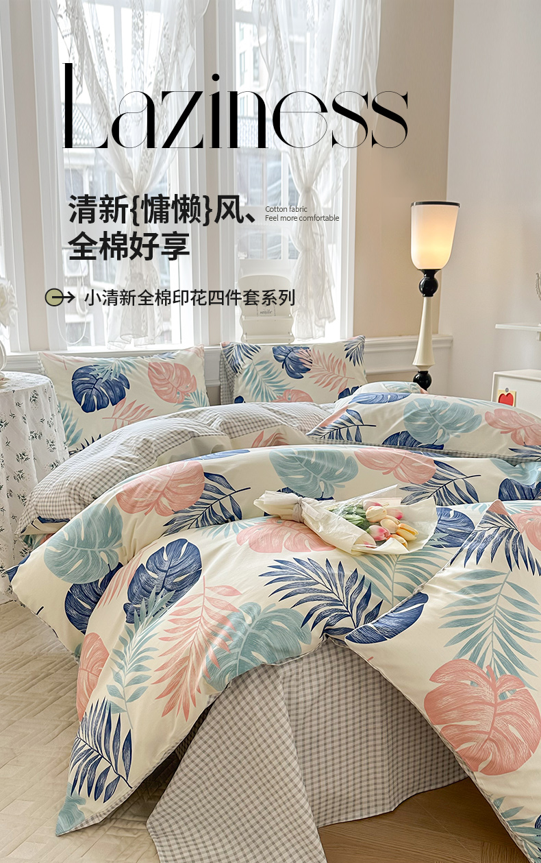 晨希家居 2024新款小清新全棉印花四件套 热带雨林