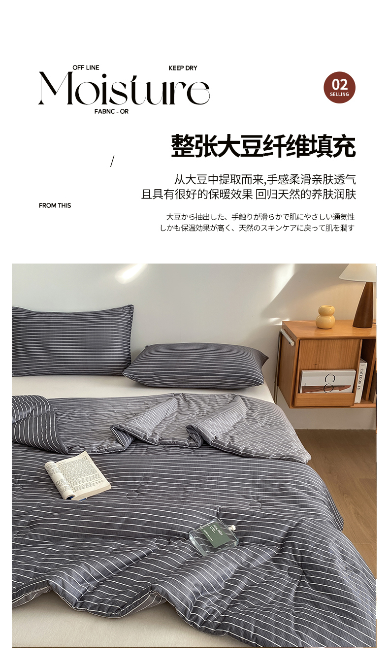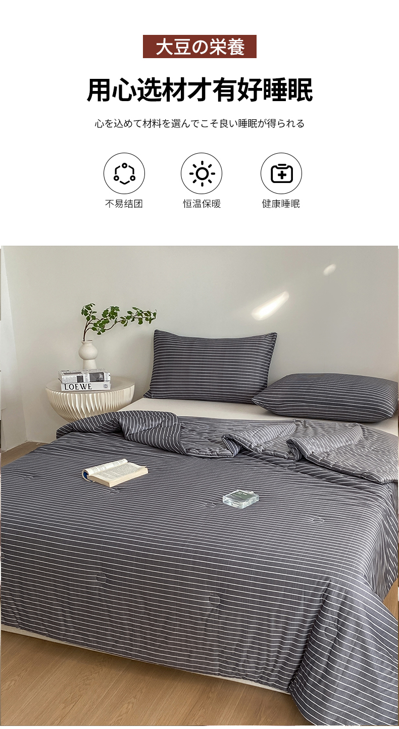 (总)荔禾家居 2024新款A类素色条纹双拼大豆被子被芯,条纹-白茶咖,条纹-洱海蓝,条纹-盈盈粉,条纹-珍珠白