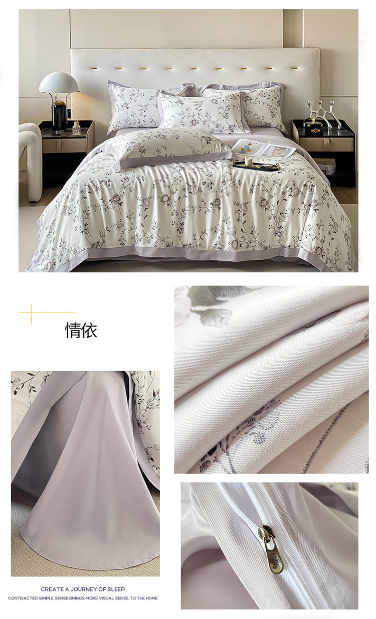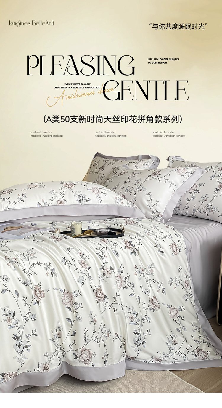 商品名称:蓝米卡夫 2024新品-A类50支新时尚天丝印花拼角款系列 情依