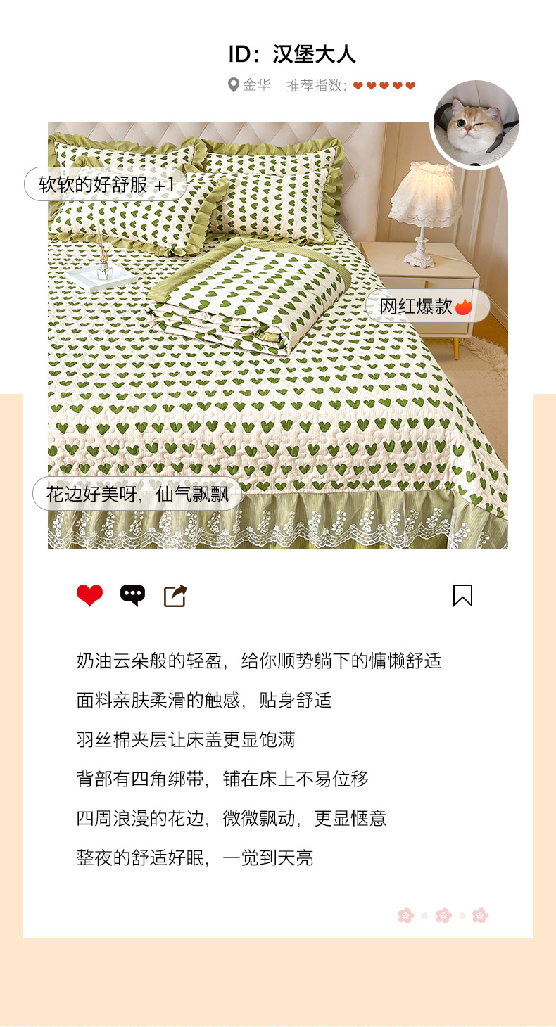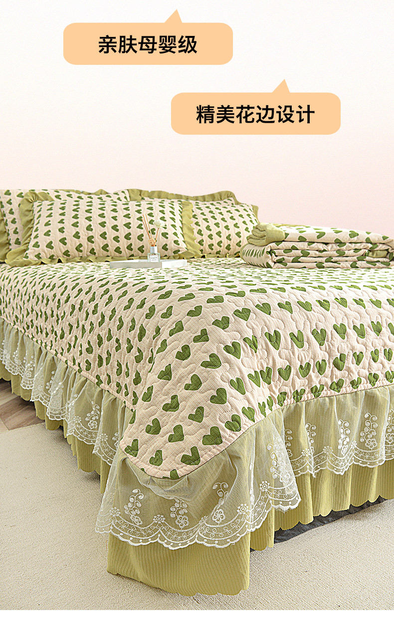 (总)梦柏 2025新款韩版双层纱夹棉绗缝床盖夏被四件套,爱心,春意,芳香,花溪,林荫,绿野仙踪,萌小兔,南瓜派对,清风,思念,香草,小蘑菇,小熊,薰衣草,幽香