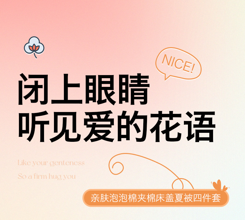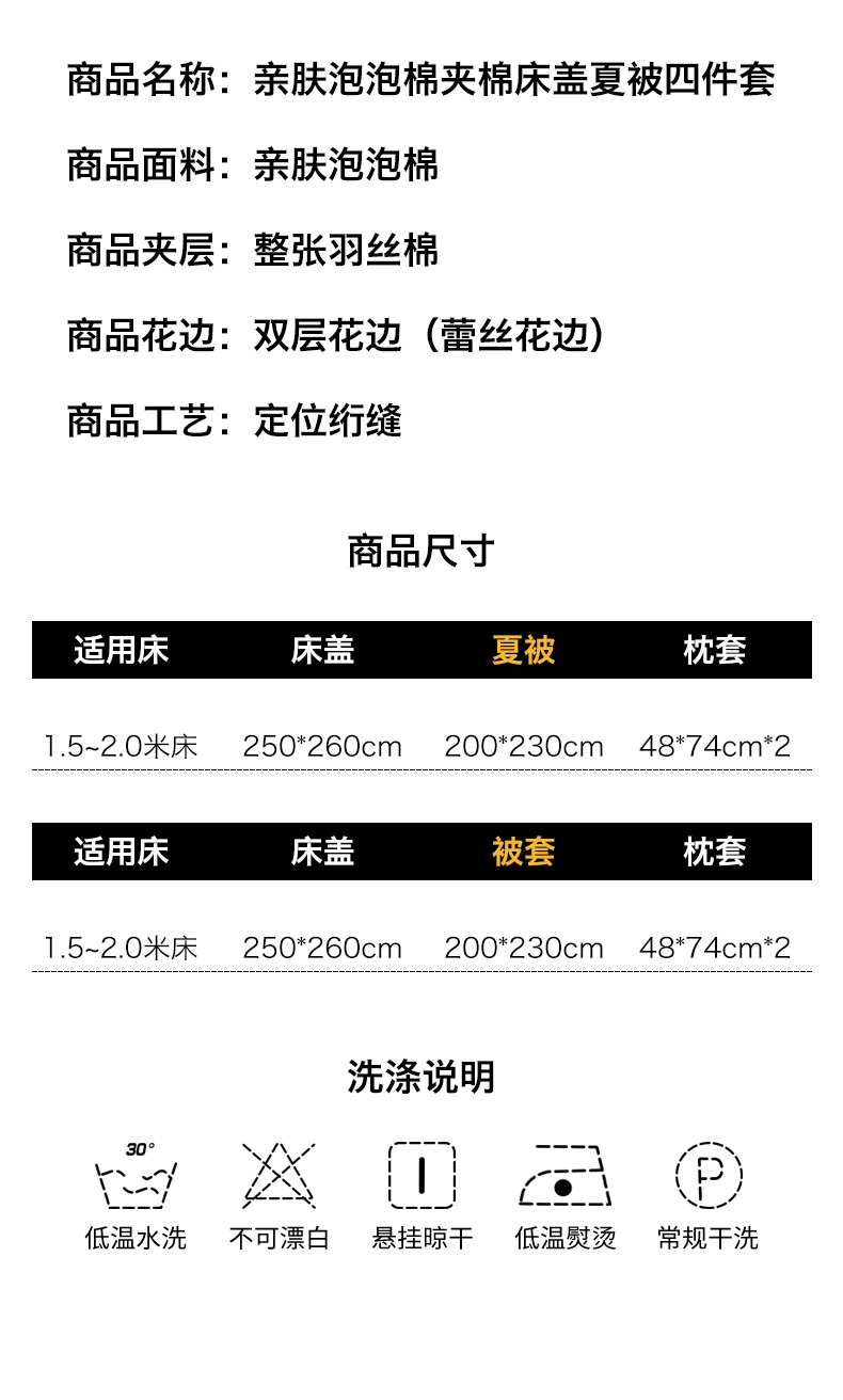 商品名称:梦柏家纺 2024新款亲肤泡泡棉夹棉床盖夏被四件套 甜心