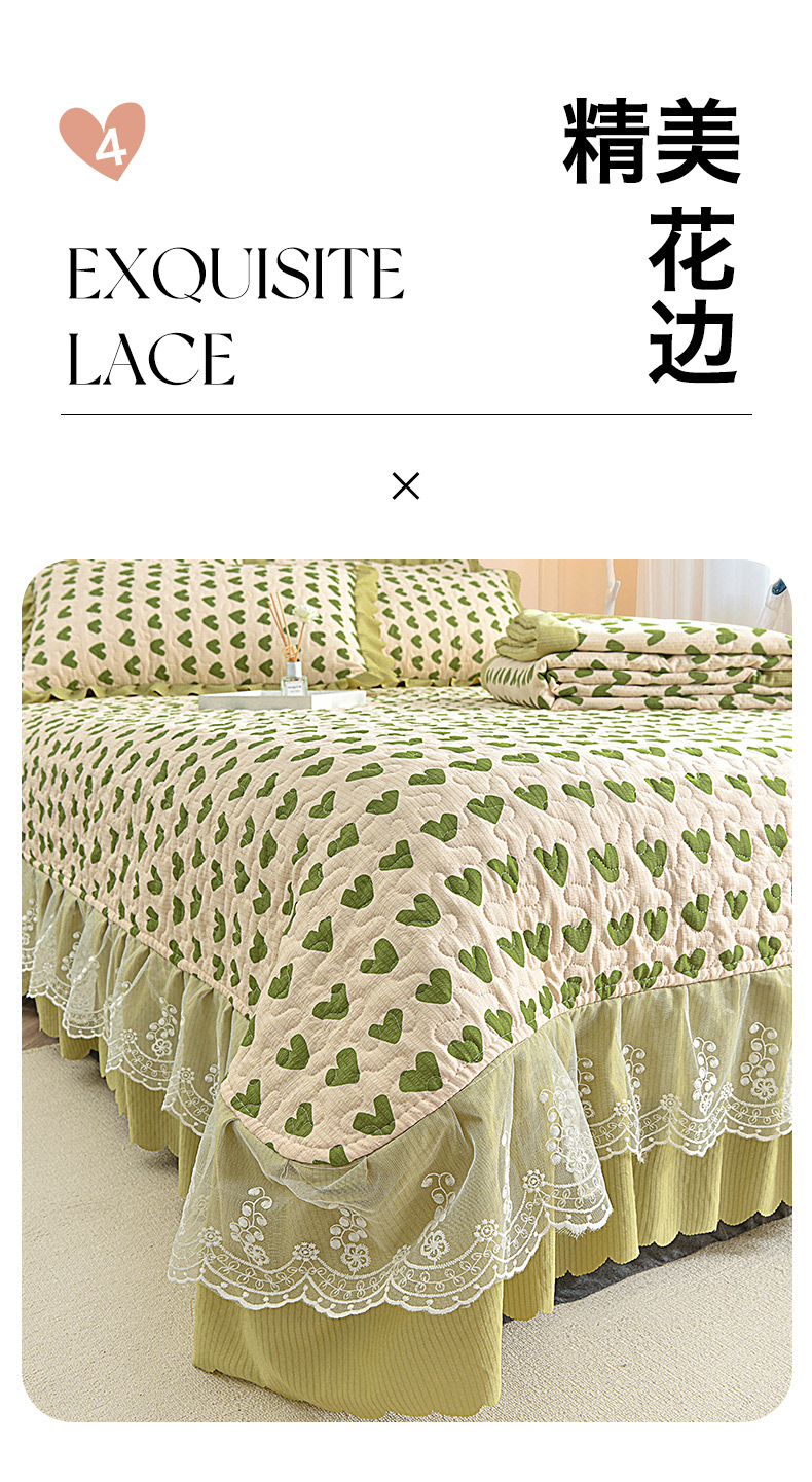 (总)梦柏家纺 2025新款韩式牛奶绒刺绣花边床盖四件套,风信紫,湖水蓝,浅草绿,蔷薇粉,樱花粉,月光白