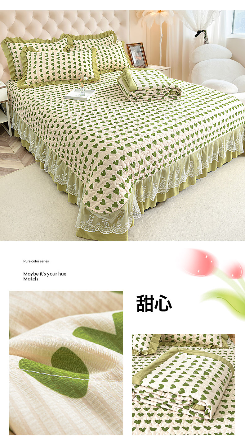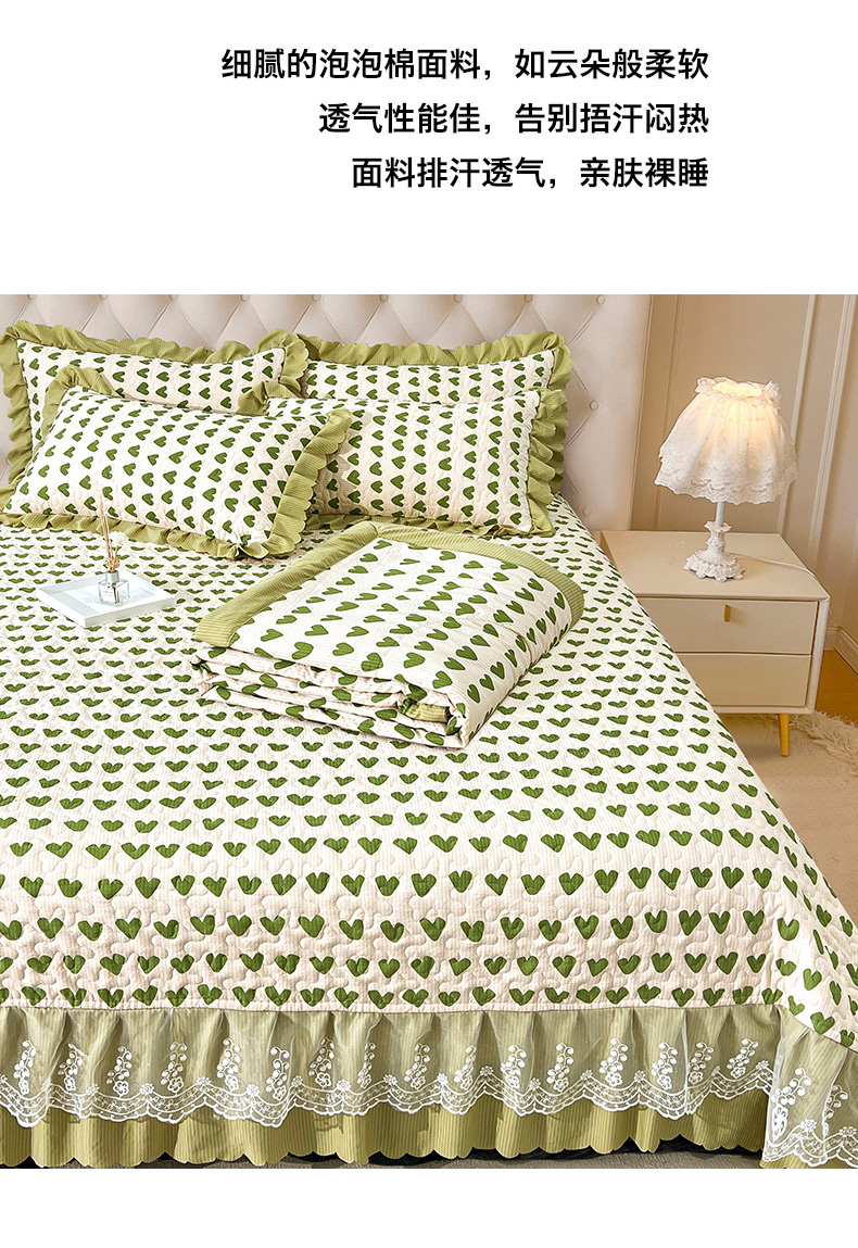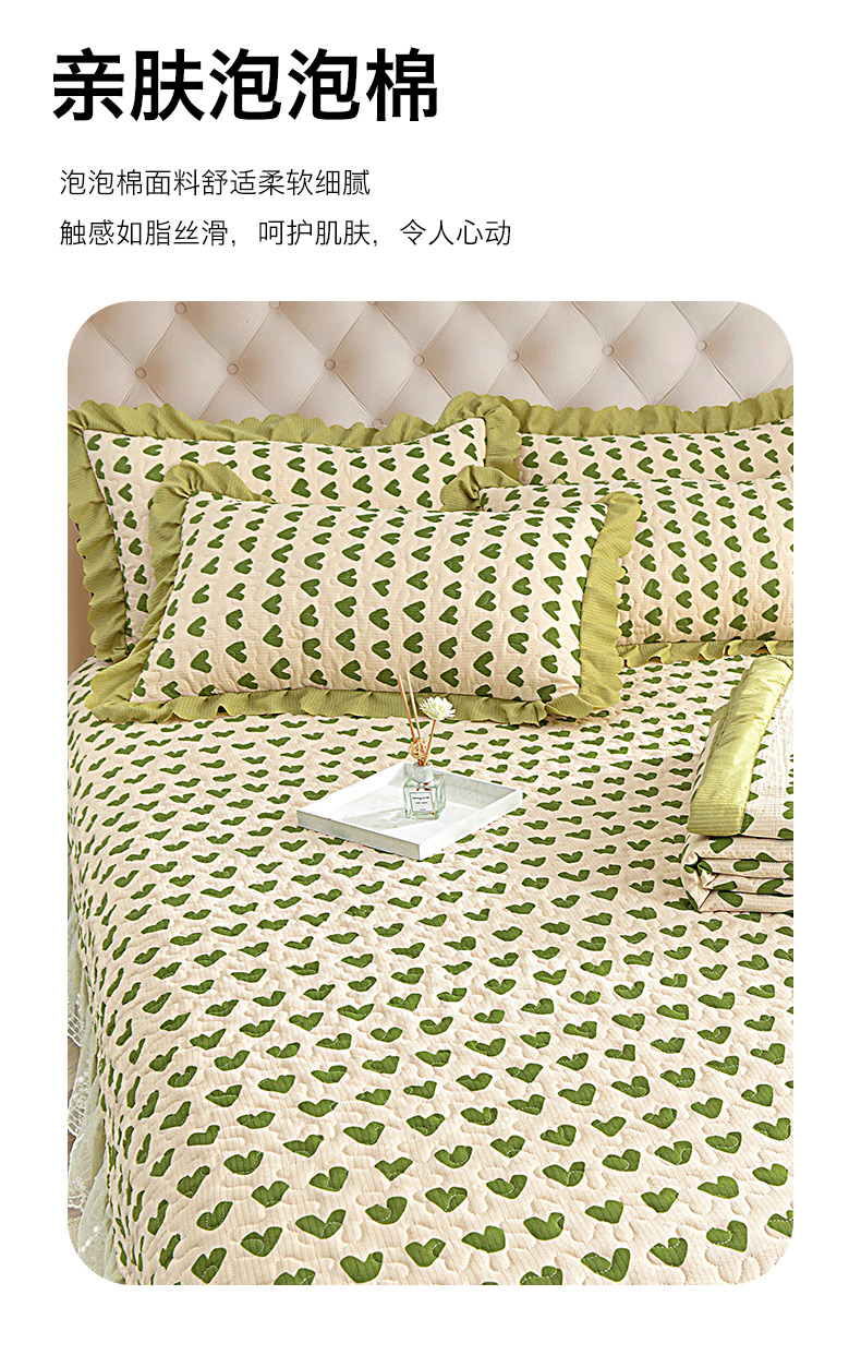 梦柏家纺 2024新款亲肤泡泡棉夹棉床盖夏被四件套 甜心