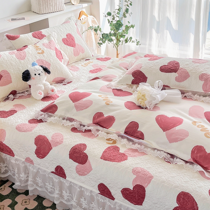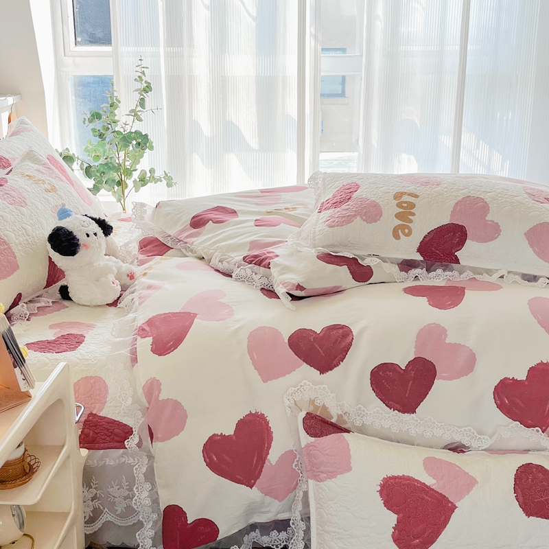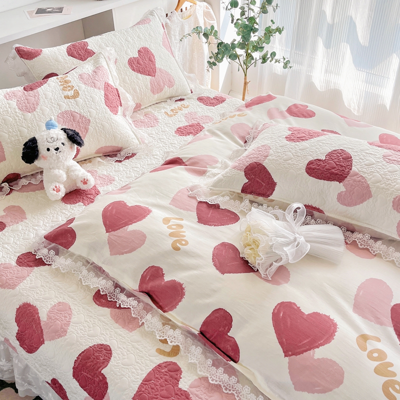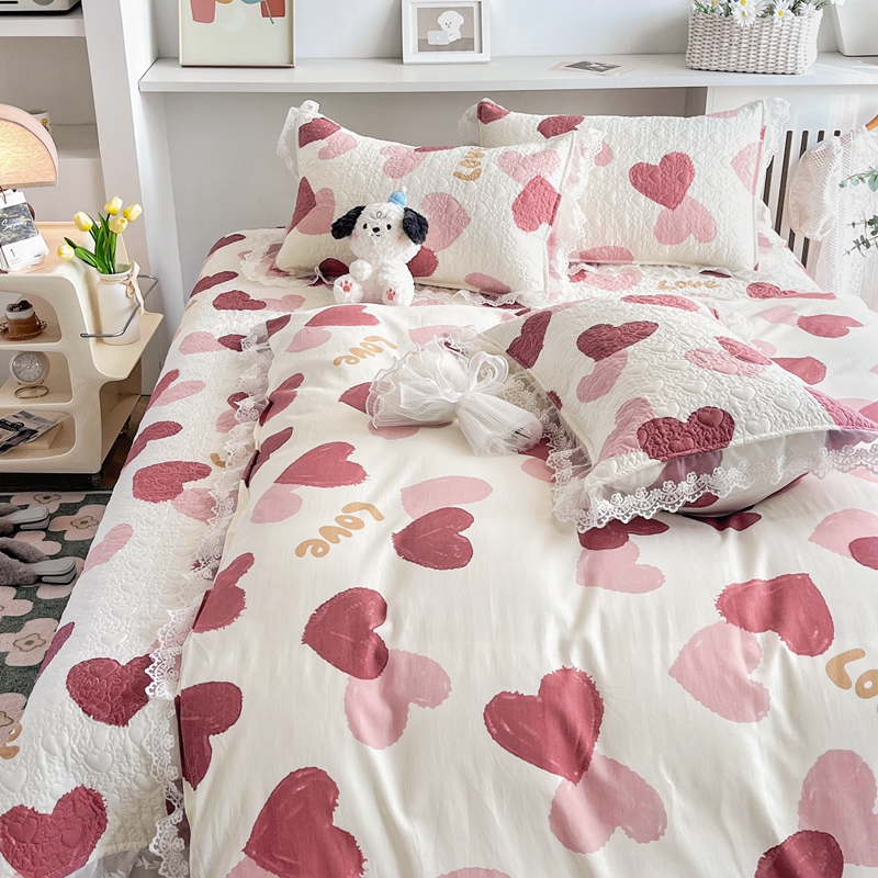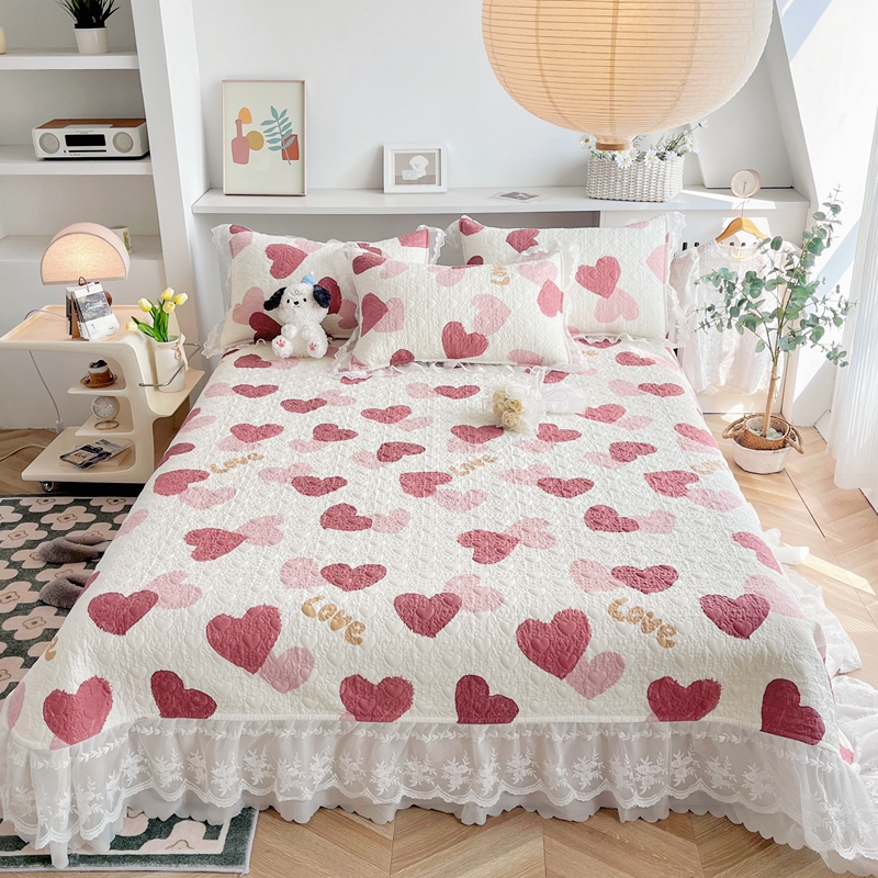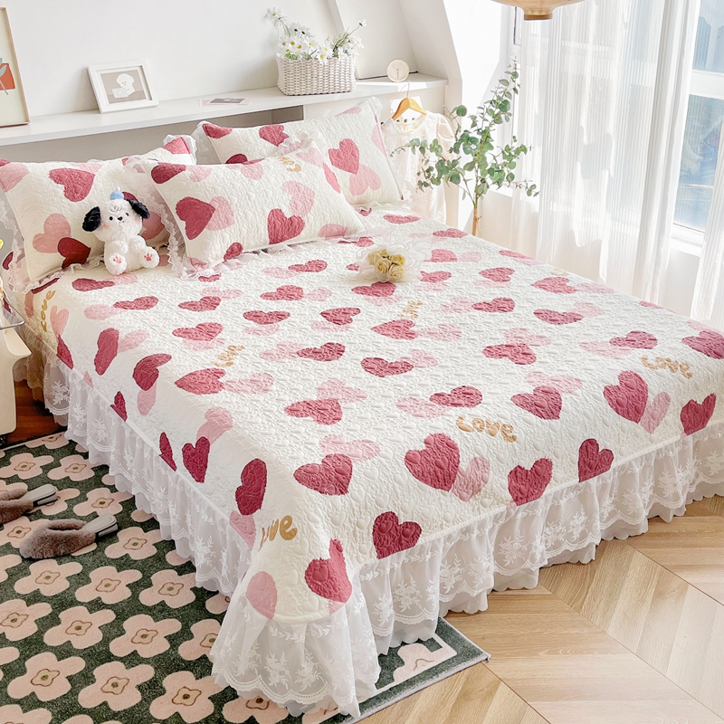 添越 2024小清新韩版蕾丝款花边纯棉夹棉床盖三件套全棉爱心熊-蕾丝款,爱心熊-蕾丝款