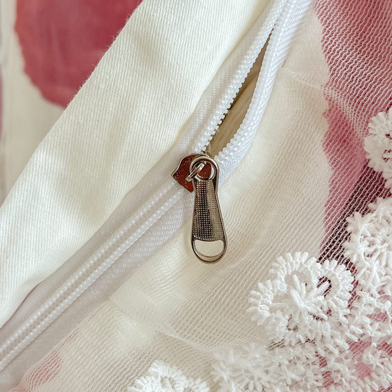 添越 2024新款雪纺蕾丝款纯棉床盖四件套 怦然心动-粉