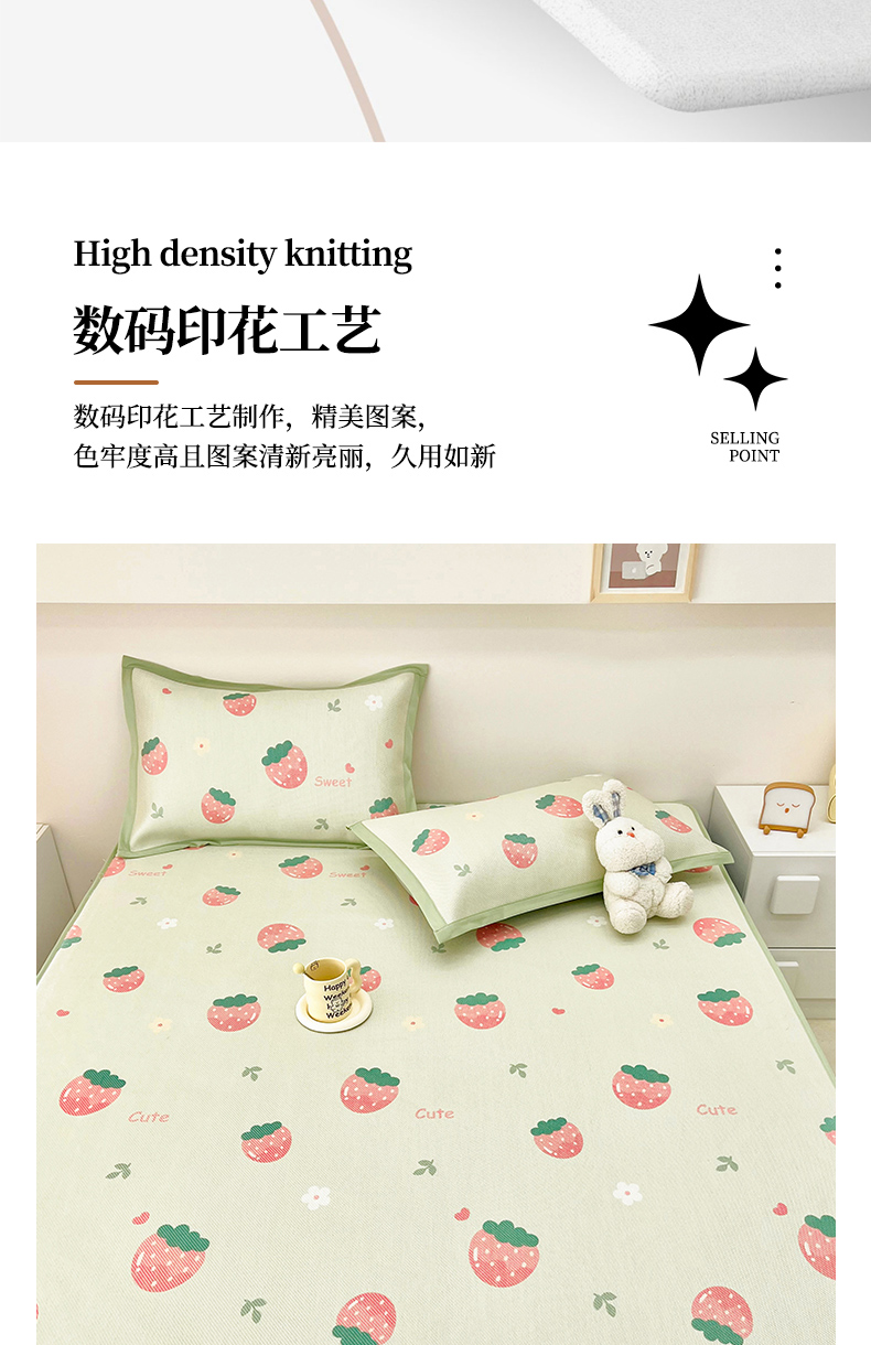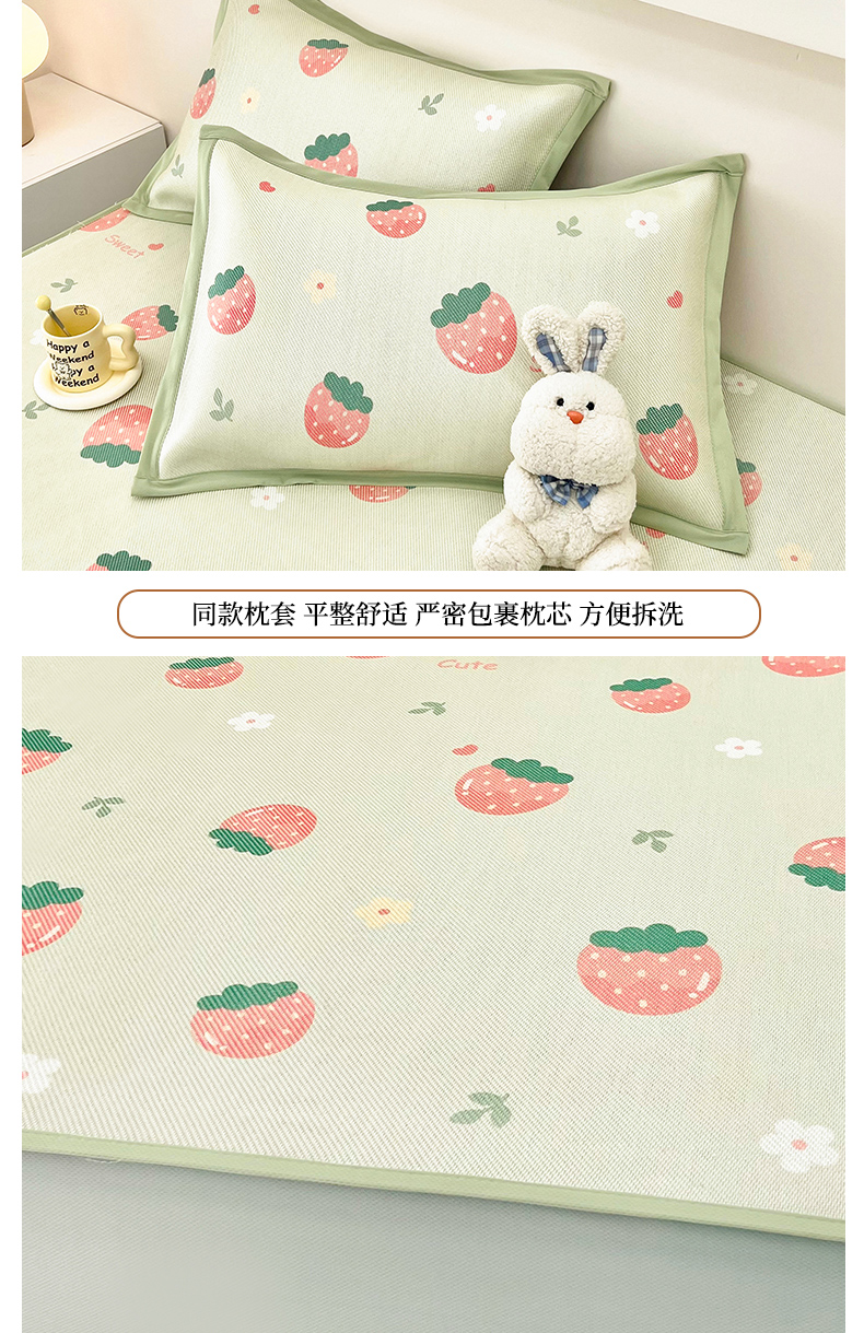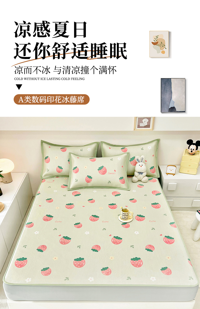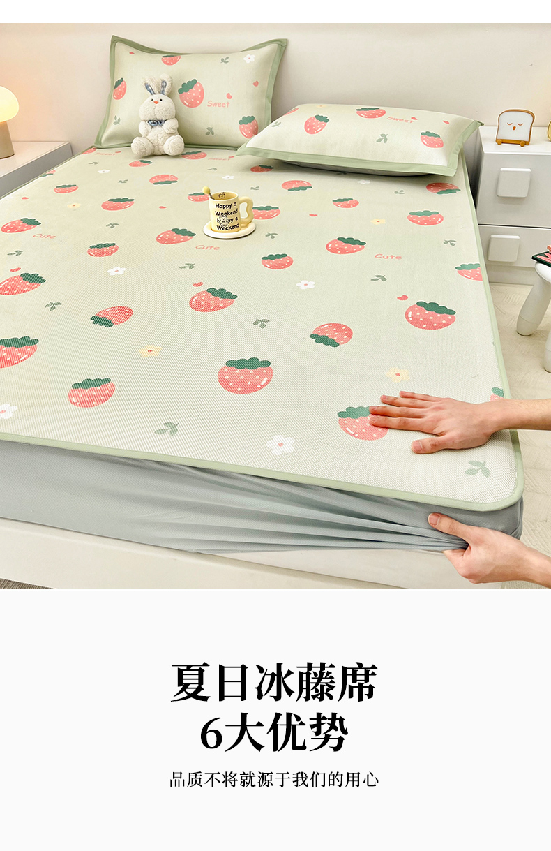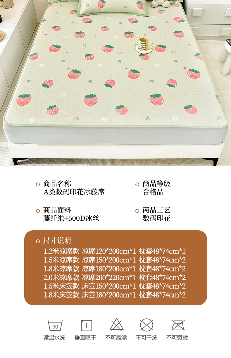 当前位置: 91家纺网 > 商品网购 > 床上用品 > 凉席 > 其他凉席 > 全季家居 2024新款5A抗菌小清新数码印花冰藤席 床笠款-草莓