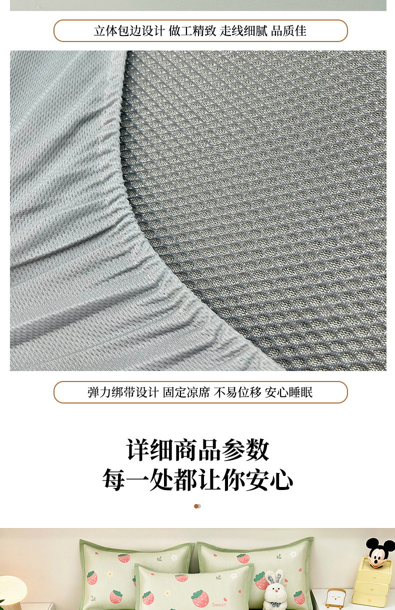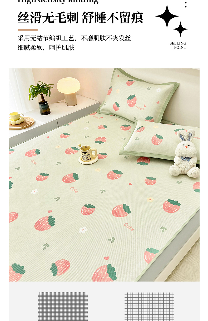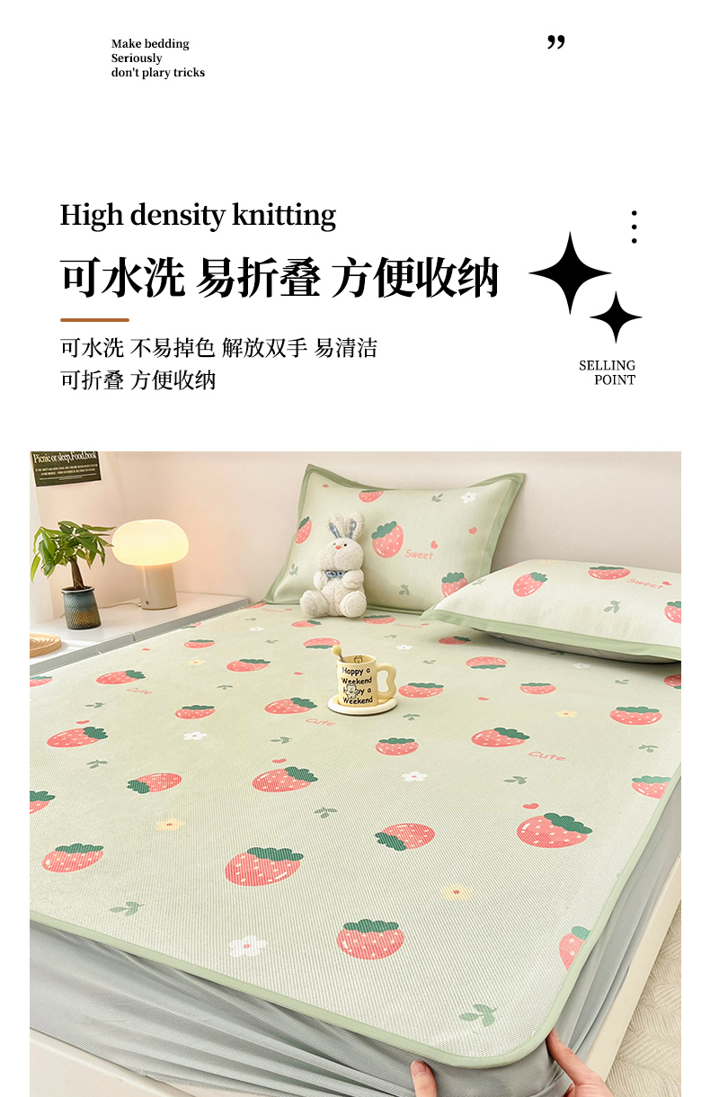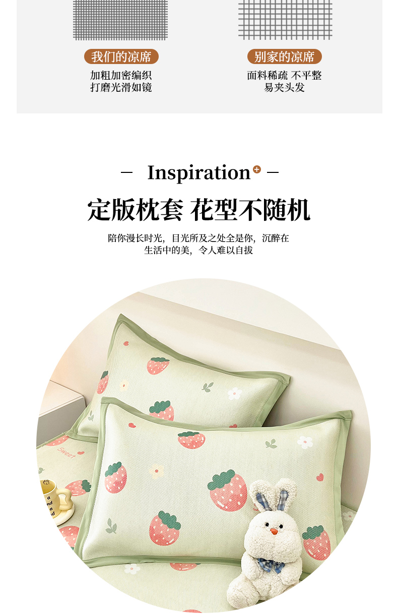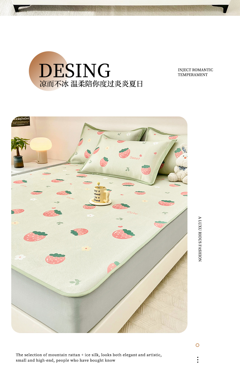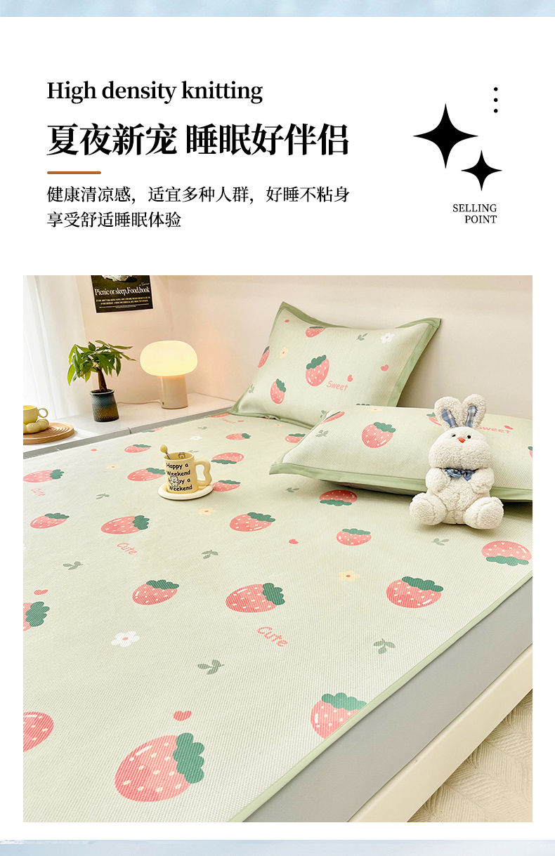 当前位置: 91家纺网 > 商品网购 > 床上用品 > 凉席 > 其他凉席 > 全季家居 2024新款5A抗菌小清新数码印花冰藤席 床笠款-草莓