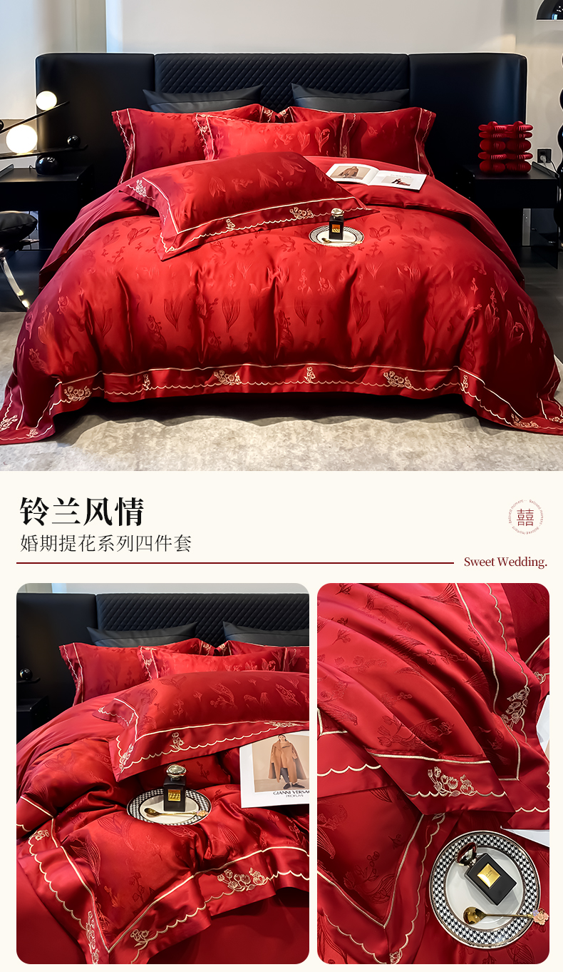 商品名称:优悦生活馆 2024新款提花婚庆四件套 铃兰风情