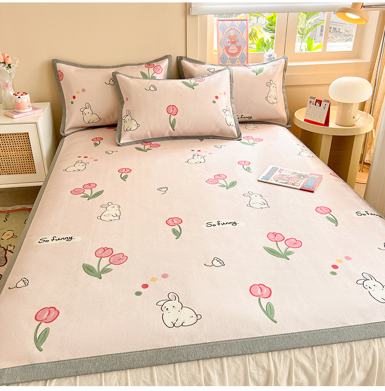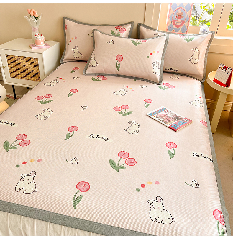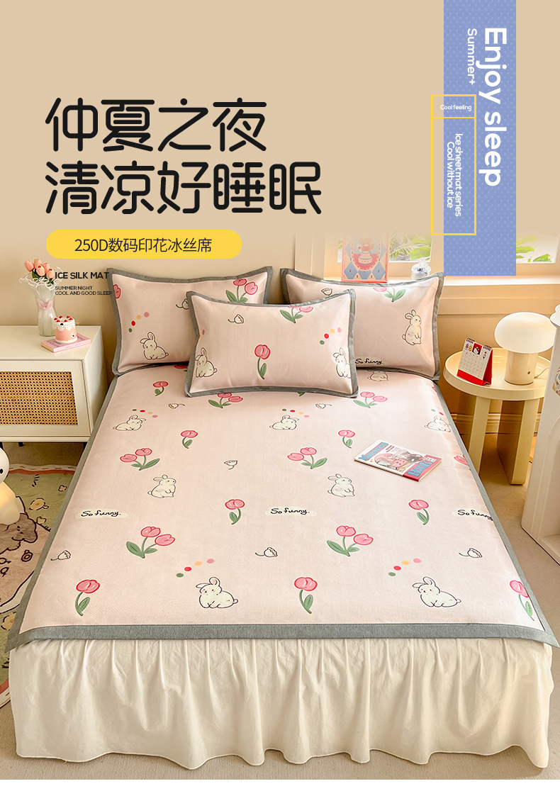 懒猫家纺 2024新款250D数码印花宽边圆网冰丝席 精灵兔