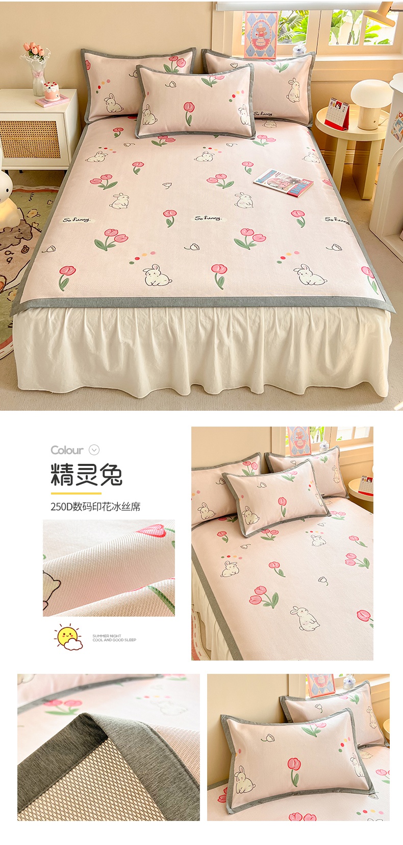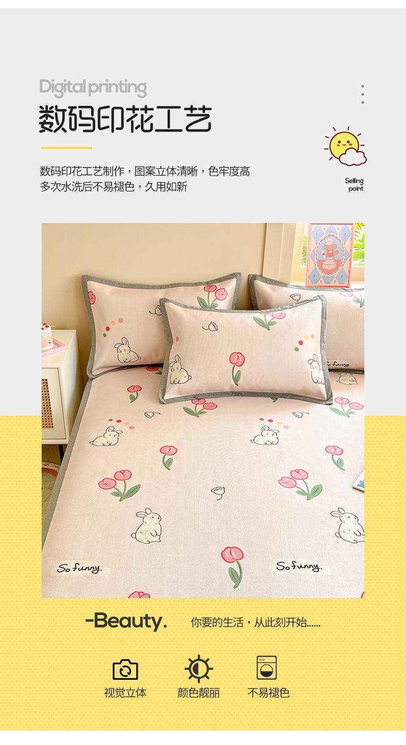 商品名称:懒猫家纺 2024新款250D数码印花宽边圆网冰丝席 精灵兔